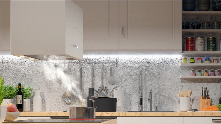 Skift nemt hastighed, tænd lyset eller timeren hvor som helst i køkkenet. Kombinationen af knapper på emhættens kabinet og den kompakte fjernbetjening sikrer maksimal komfort.