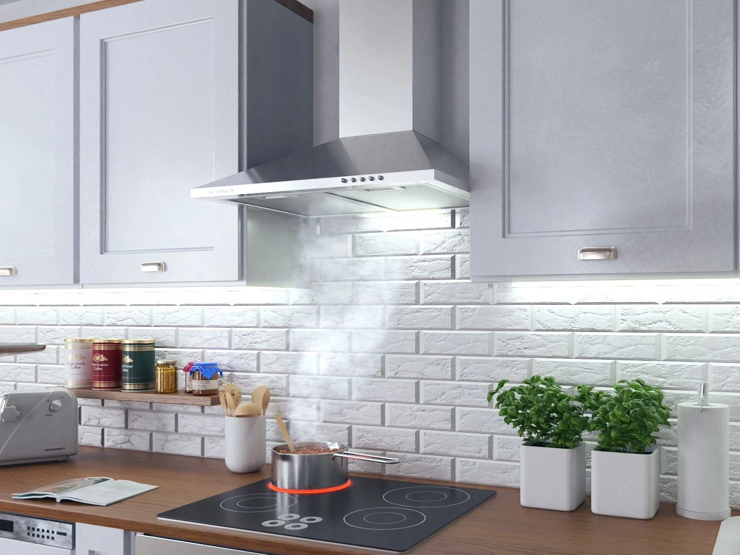 - Kapacitet 350 m³/t – effektiv fjernelse af lugt og damp fra madlavning.