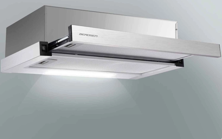 Det udtrækkelige panel udvider opsamlingsfladen for damp kun, når det er nødvendigt. Når det skubbes ind, forbliver emhætten diskret og usynlig under skabet.