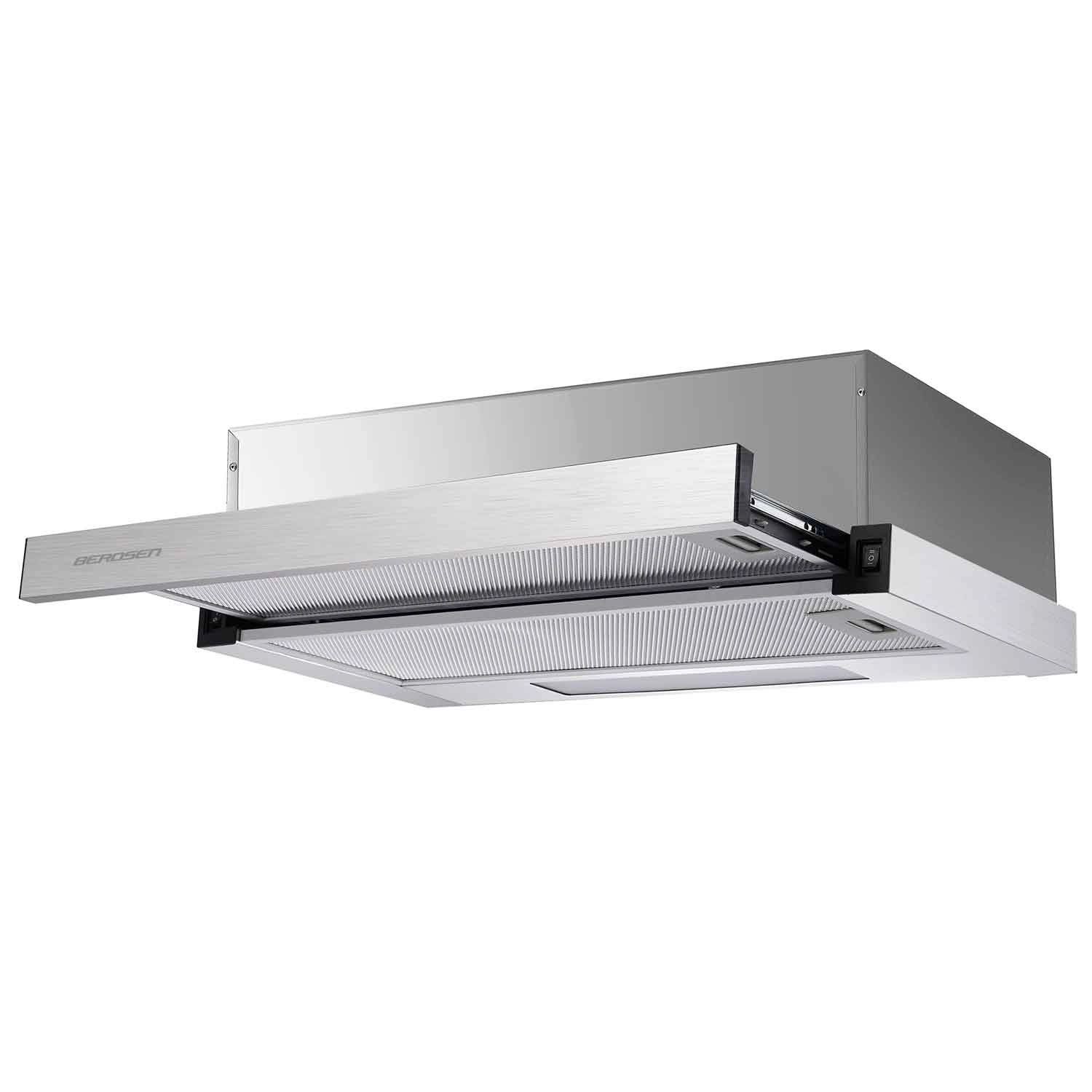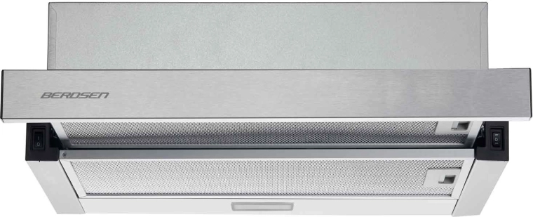 Denne indbyggede teleskopiske emhætte sparer plads og byder på en elegant udførelse i rustfrit stål, der matcher det moderne køkken. Når frontpanelet trækkes ud, aktiveres den automatisk og øger indsugningsfladen for effektiv opsamling af damp, lugte og fedt. Med to hastigheder tilpasser du nemt ydelsen til dine aktuelle madlavningsbehov.
