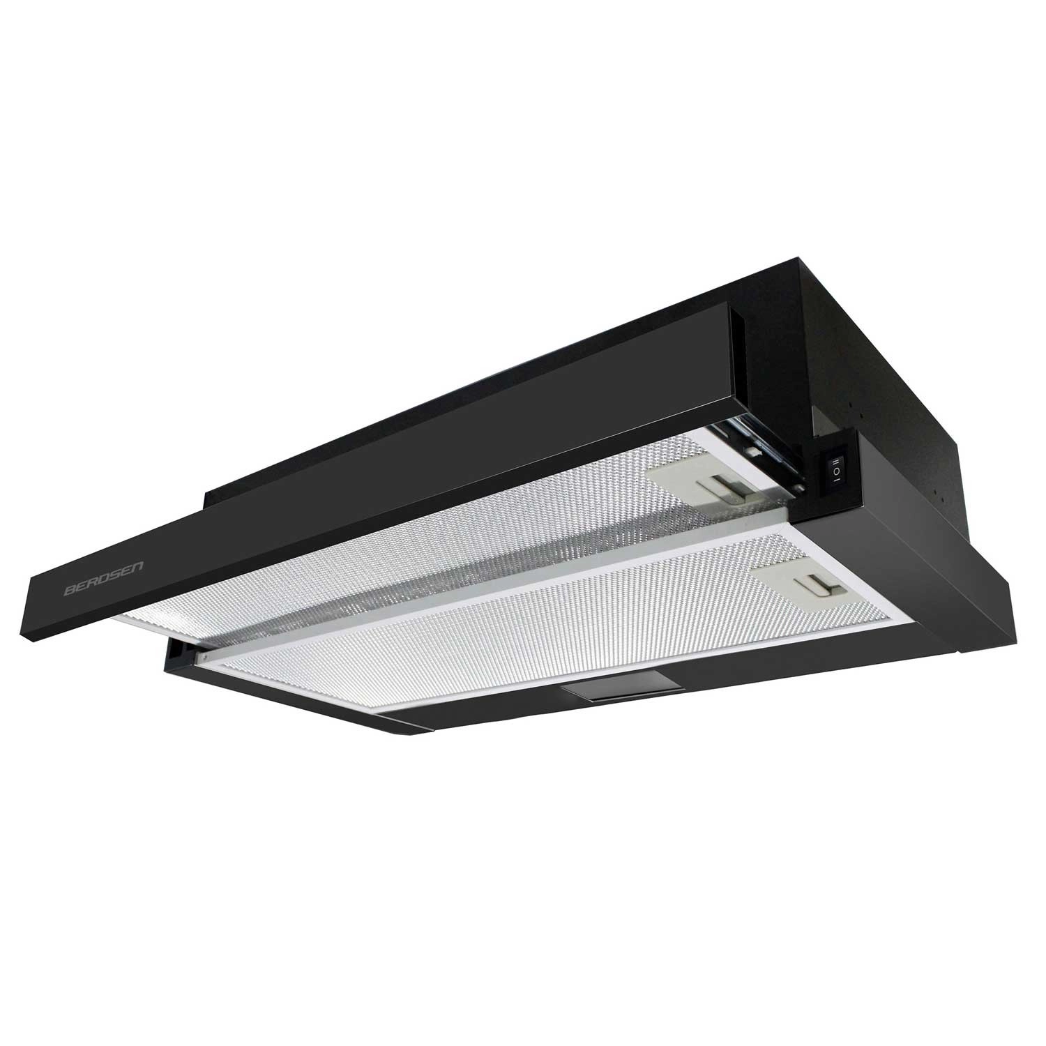 Den kompakte teleskopiske emhætte BERDSEN med en bredde på 50 cm i elegant sort tilbyder kraftig udsugning op til 200 m³/t, 2 driftstilstande (aftræk og recirkulation), støjsvag drift og energibesparende LED-belysning 2 W. Takket være den udtrækkelige front sparer den plads, passer ind i ethvert køkken og er let at holde ren med aluminiums flerlagede filtre.