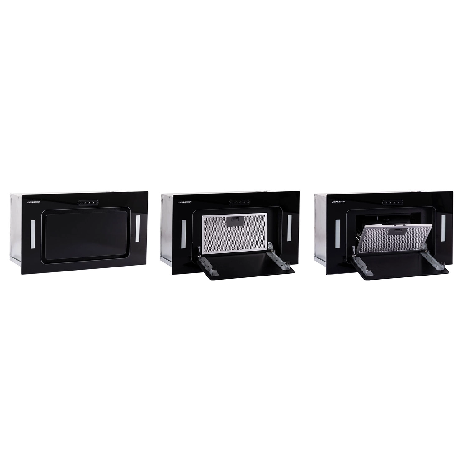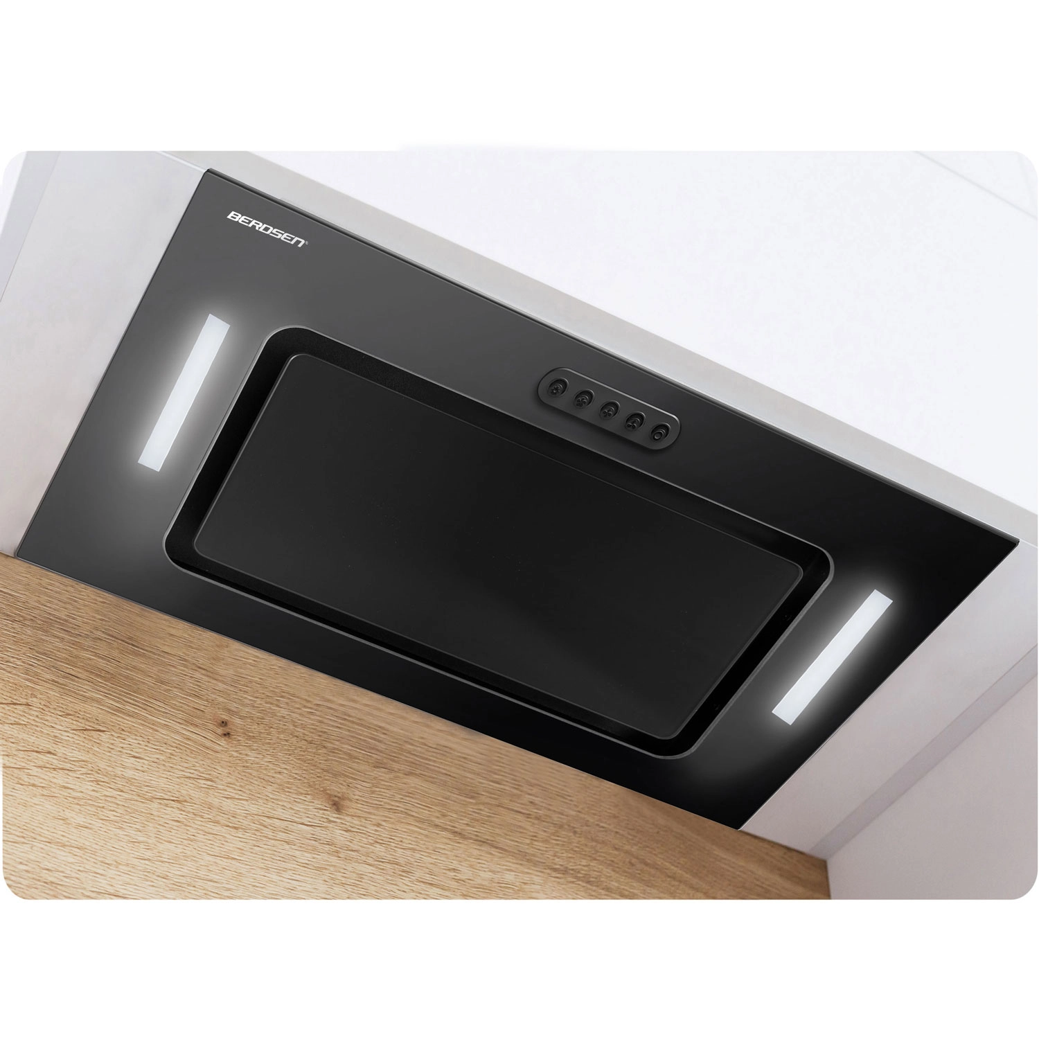 BERDSEN BE-52A er en kompakt og effektiv indbygget emhætte, som med sin bredde på 52 cm passer under de fleste køkkenskabe. Sort hærdet glas og rene linjer understreger det moderne udtryk, mens mekaniske trykknapper sikrer hurtig og intuitiv valg mellem 3 effekttrin. Dobbelt LED-belysning 2×2 W oplyser kogeområdet perfekt og sparer samtidig energi.
