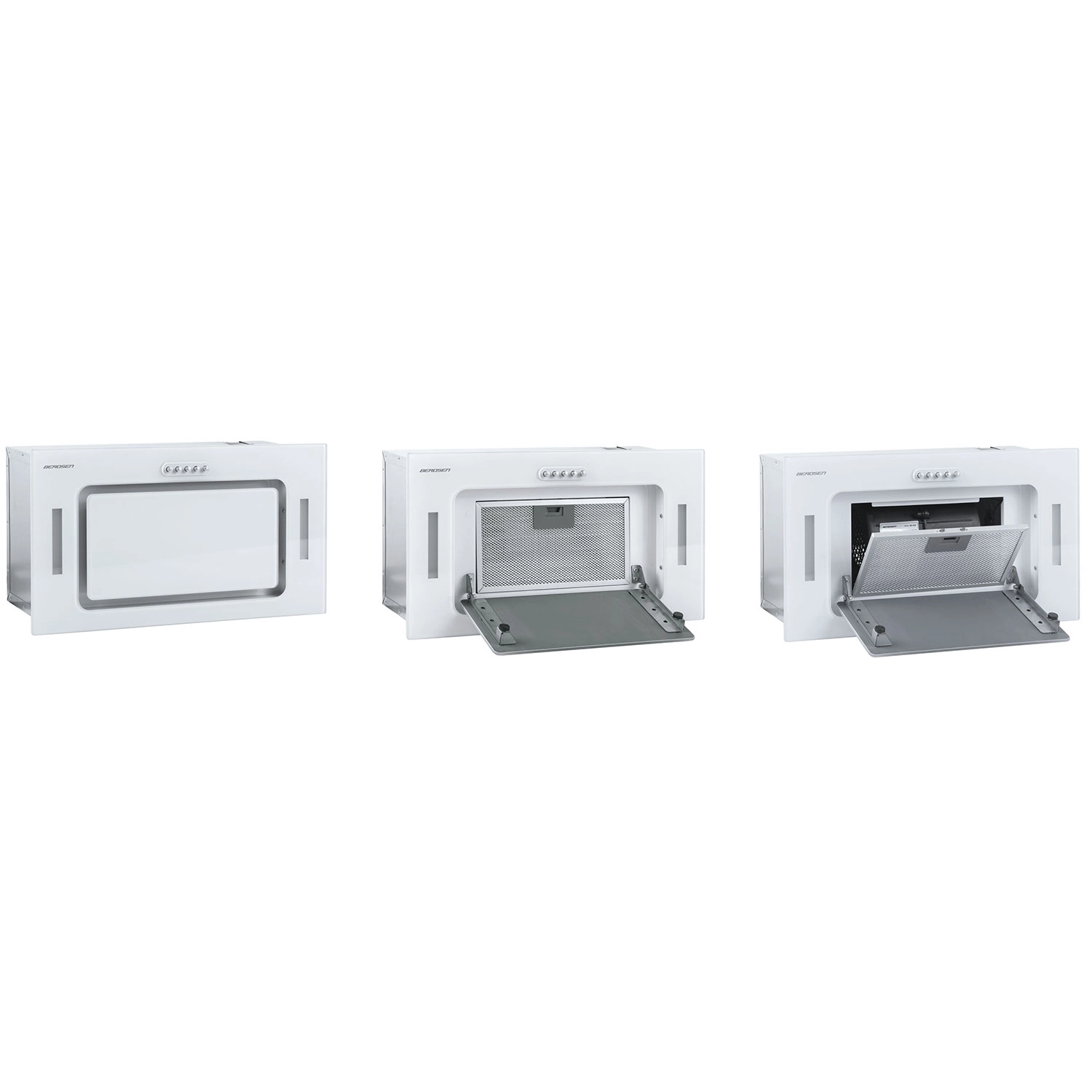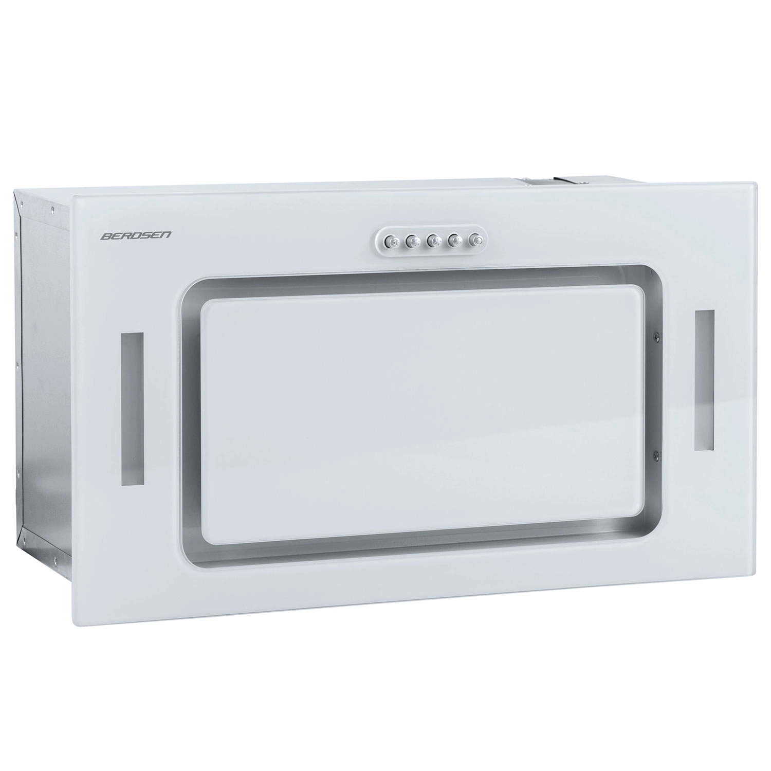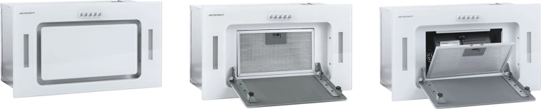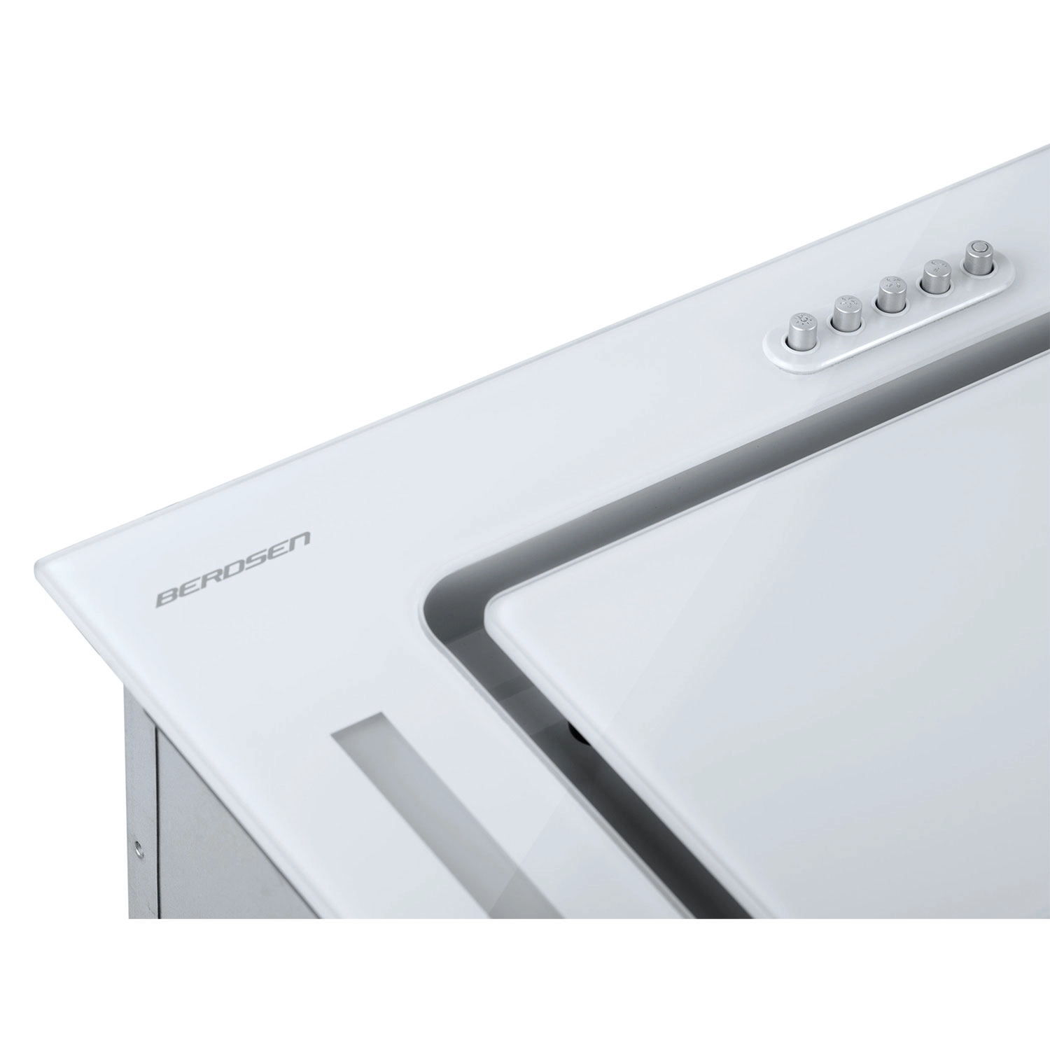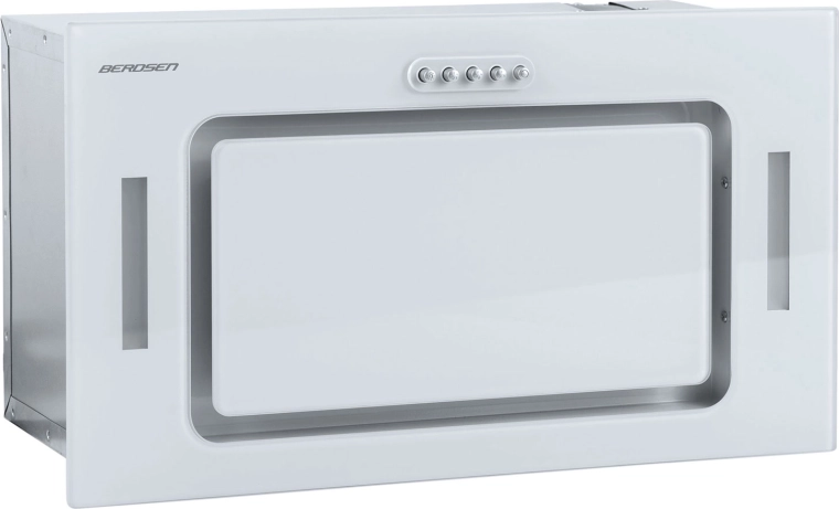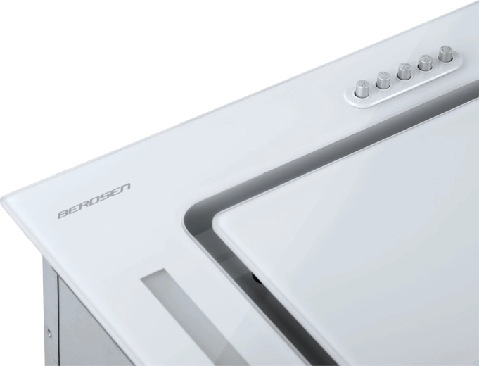 Den kompakte underbygningsemhætte BERDSEN BE-52A i hvid med glasfront tilbyder høj kapacitet op til 380 m³/t, 3 hastigheder, støjsvag drift og energibesparende LED-belysning. Den kan bruges både til aftræk og recirkulation med kulfiltre. Det robuste aluminiumsfedtfilter kan nemt tages ud og skylles under vand.