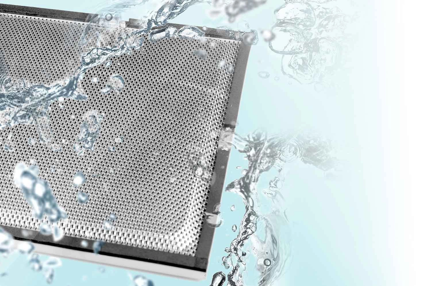 Det robuste 3-lags aluminiumsfilter opfanger fedt og støv. Tag det blot ud og skyl det under rindende vand – uden besværlig vedligeholdelse.
