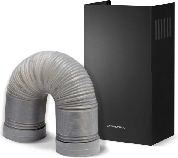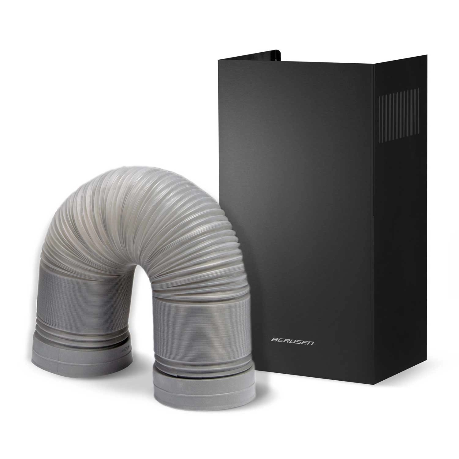 I pakken finder du 2× teleskopisk skorstensbeklædning og en 2 m fleksibel aftræksslange – for hurtig og ren montering i ethvert køkken.
