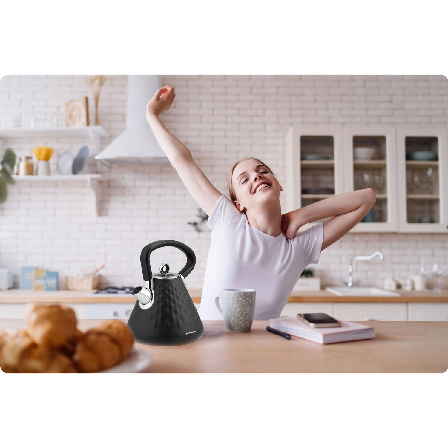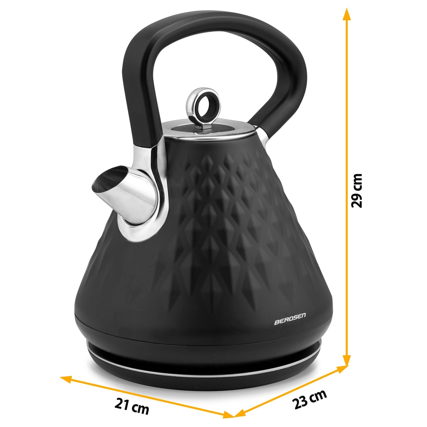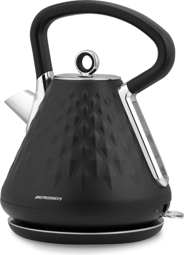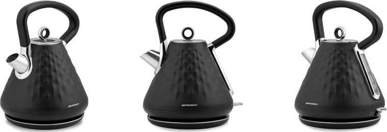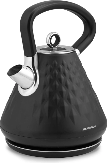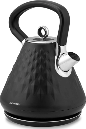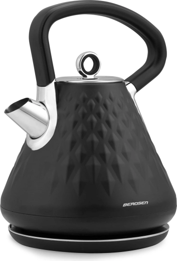 Den stilfulde elektriske Berdsen-kedel med en kapacitet på 1,7 l kombinerer hurtig opvarmning, mat premiumfinish og 360° drejbar base. Den tilbyder ergonomisk håndtag, der ikke bliver overophedet, aftageligt metalfilter mod kalk, belyst afbryder og skridsikre fødder for sikker brug.