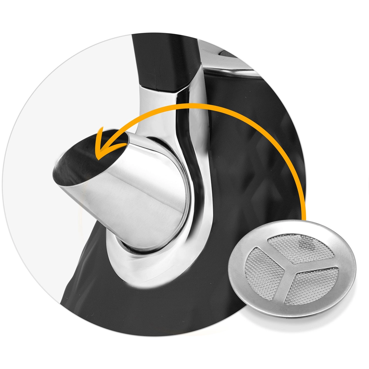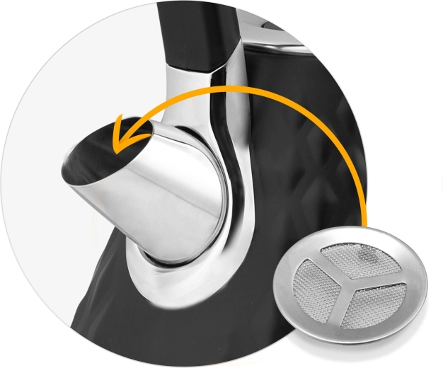 Det fine antikalkfilter i tuden opfanger aflejringer; det kan nemt tages ud, skylles eller udskiftes med et nyt for en helt ren drik.