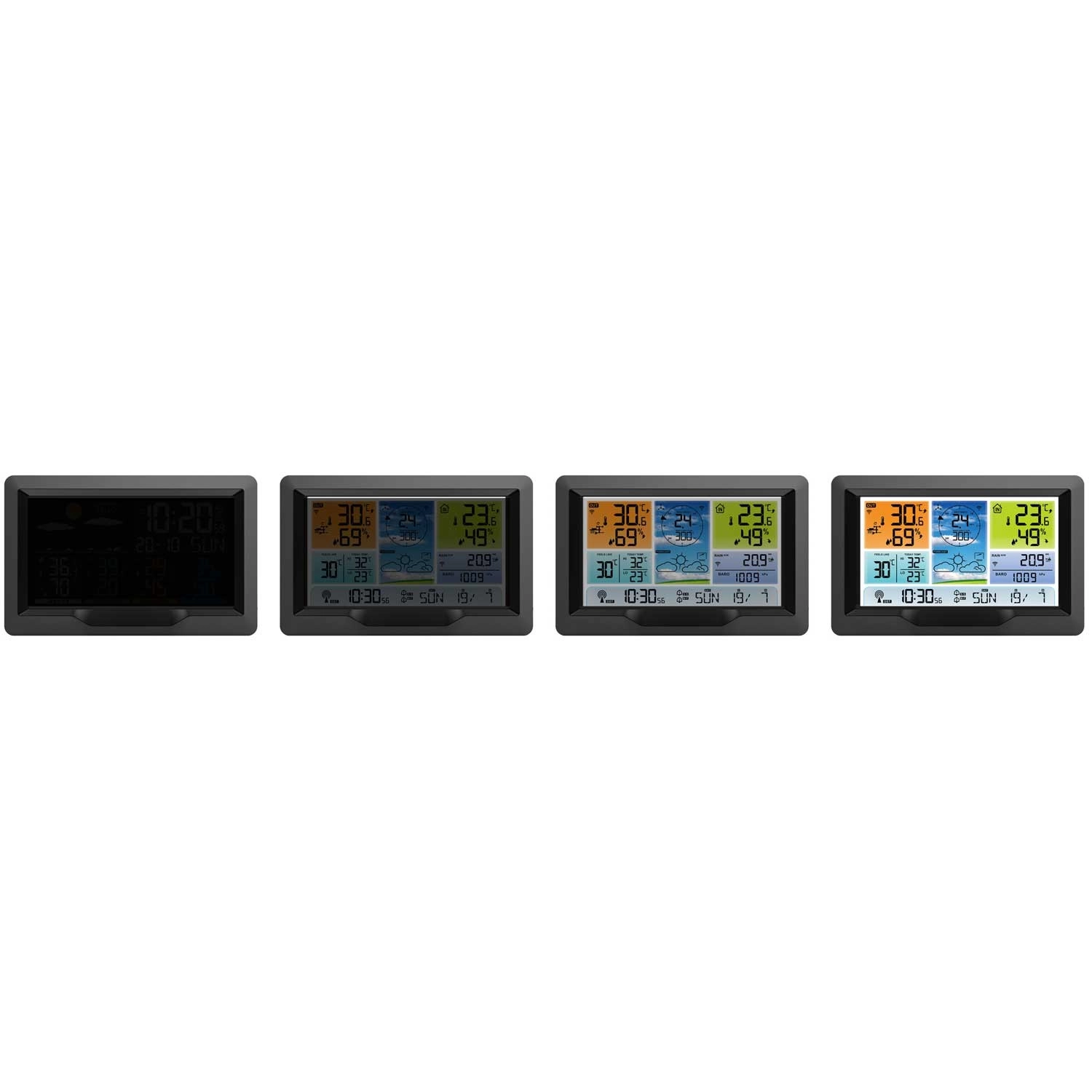 For ekstra bekvemmelighed får du alarm med snooze, kalender til år 2099, DCF77 for automatisk tidsindstilling og alarmer for høj/lav udendørstemperatur inkl. frostvarsel. Farve-LCD’en tilbyder 3 niveauer af bagbelysning (100 % / 50 % / 10 %) eller fuld slukning. Stationen understøtter trådløs sensortilkobling op til 100 m og mulighed for solcelledrift på udendørsmodulet.