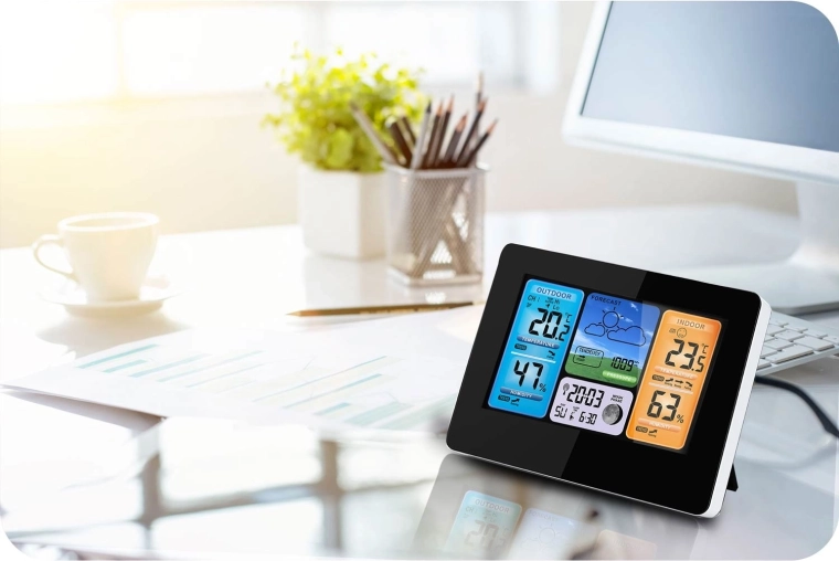 • Klimakontrol: præcis luftfugtighed og komfortindikator for et sundere miljø.