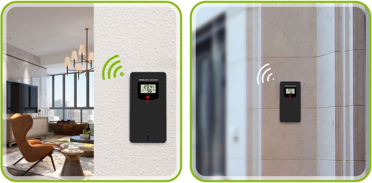 - Trådløse målinger – udendørssensor med rækkevidde op til 60 m og mulighed for udvidelse med flere kanaler.