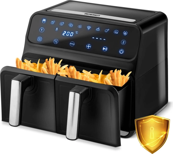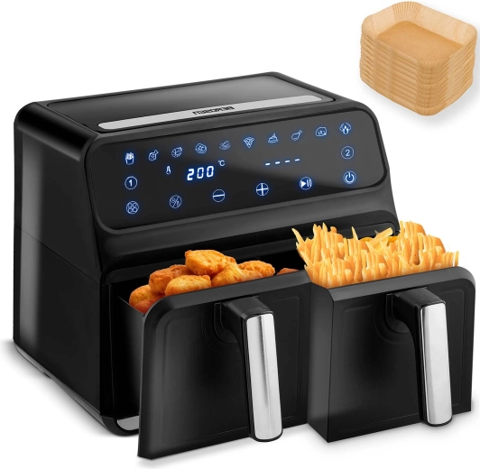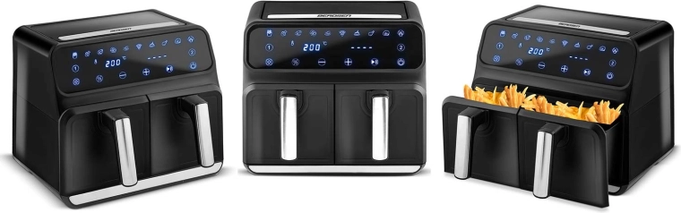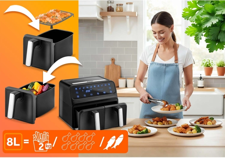 To separate kurve gør det muligt at tilberede forskellige retter på samme tid – for eksempel sprøde pommes frites og saftige nuggets. Du sparer tid og energi uden at blande smage.