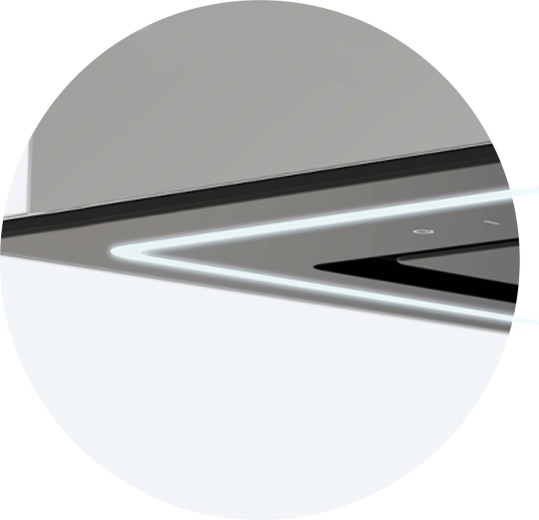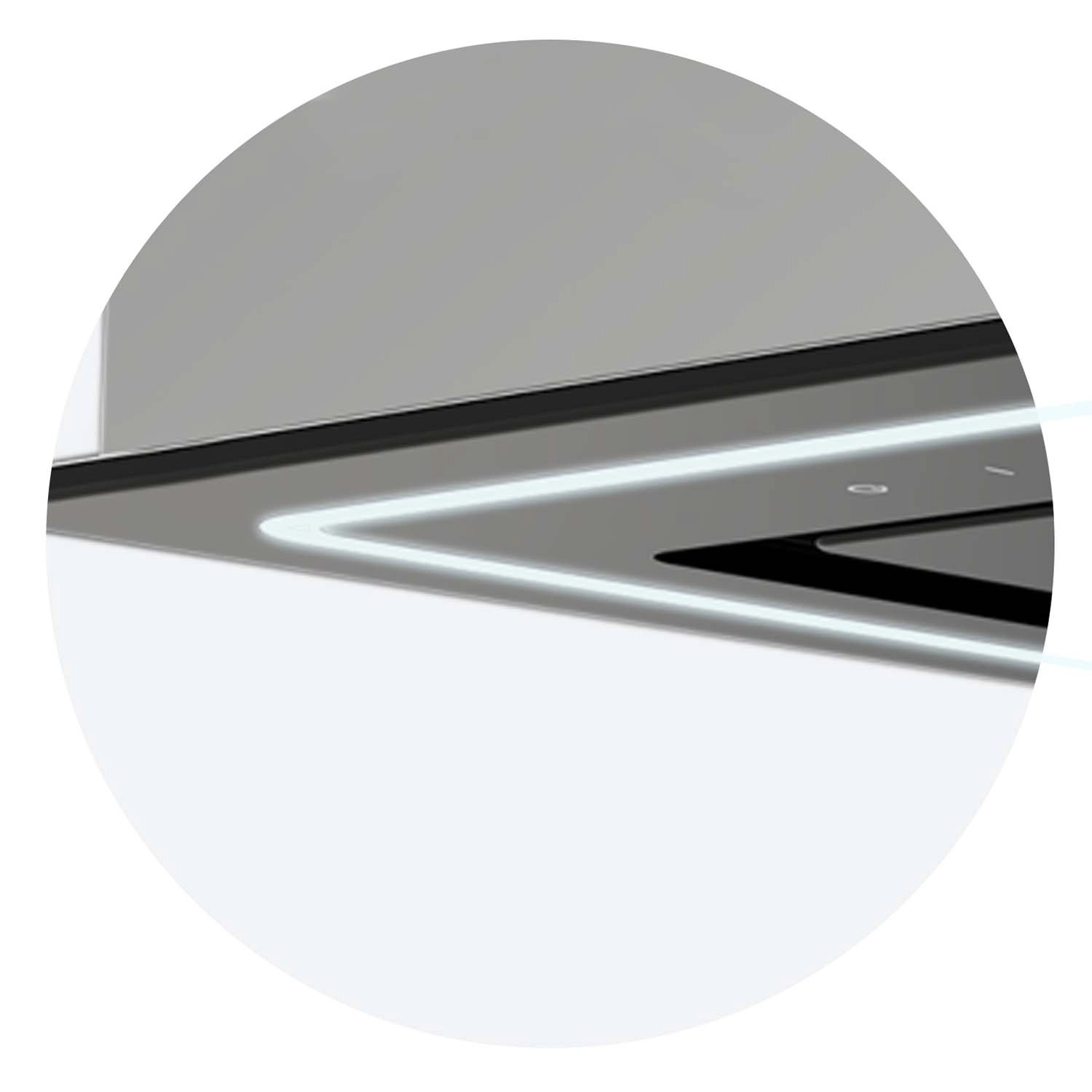 Bekvem styring af udsugning og belysning via en følsom touchpanel eller den medfølgende fjernbetjening – komfort lige ved hånden.