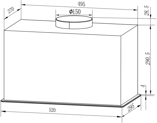 Modellen tilbyder 9-trins effektregulering med en maksimal kapacitet på 432 m3/t og en motor på 100 W til daglig driftssikkerhed. Den kan betjenes via touchpanelet eller med den medfølgende fjernbetjening. Drift er mulig som aftræk (150 mm) eller recirkulation med valgfrie kulfiltre BT-L (2 stk., tilkøb).