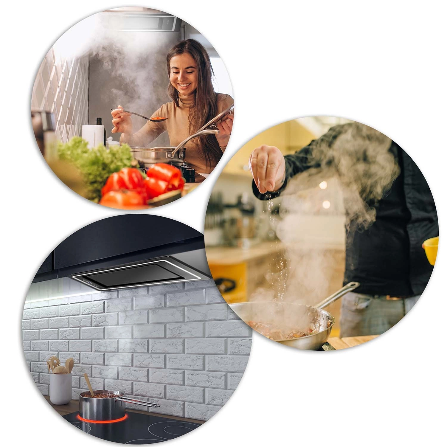 Maksimal kapacitet op til 432 m3/t og fin trinregulering af effekten til hurtig fjernelse af damp, røg og lugte ved enhver madlavningsstil.