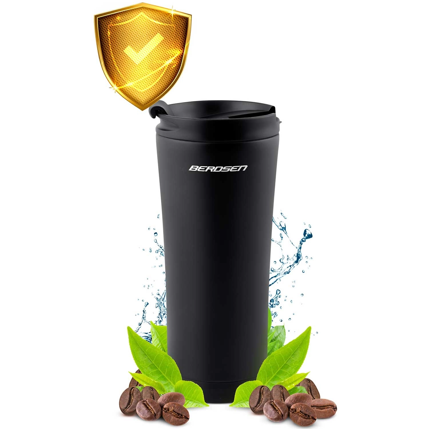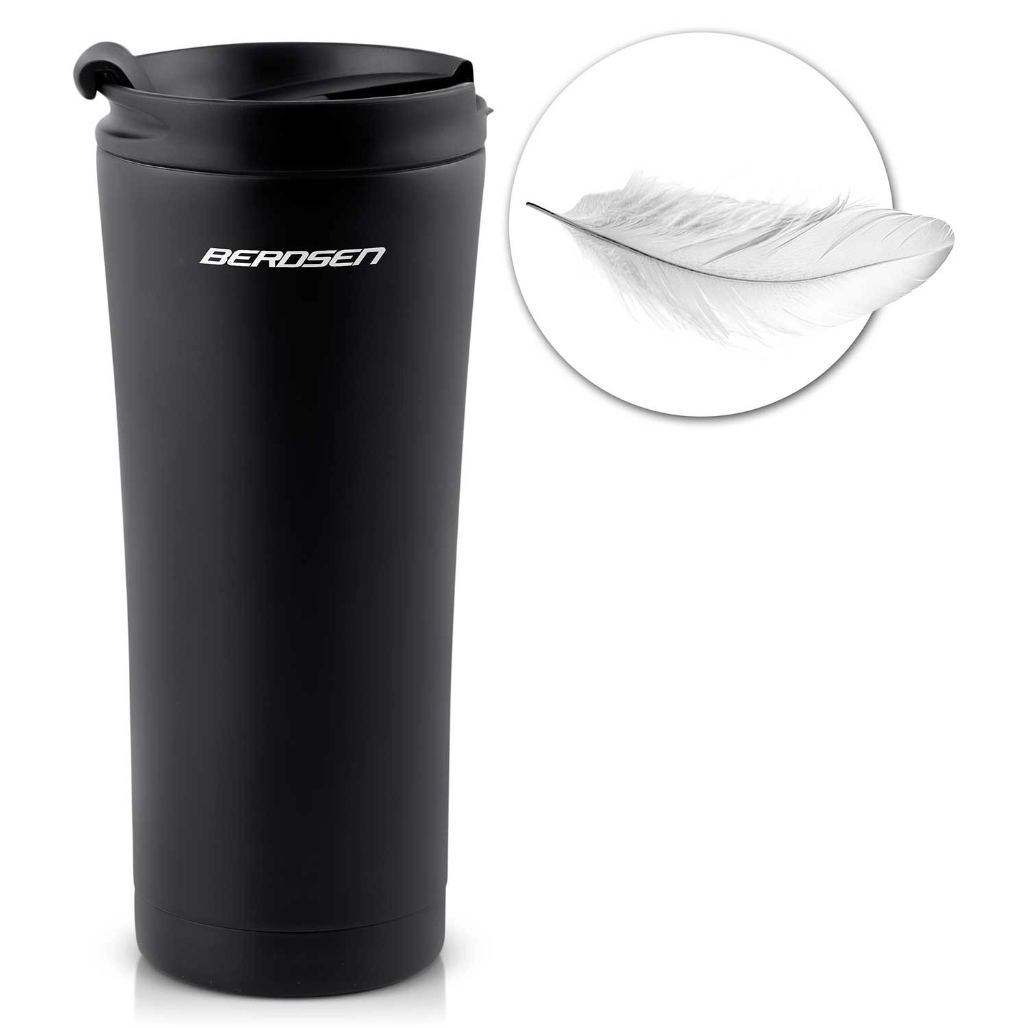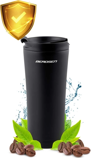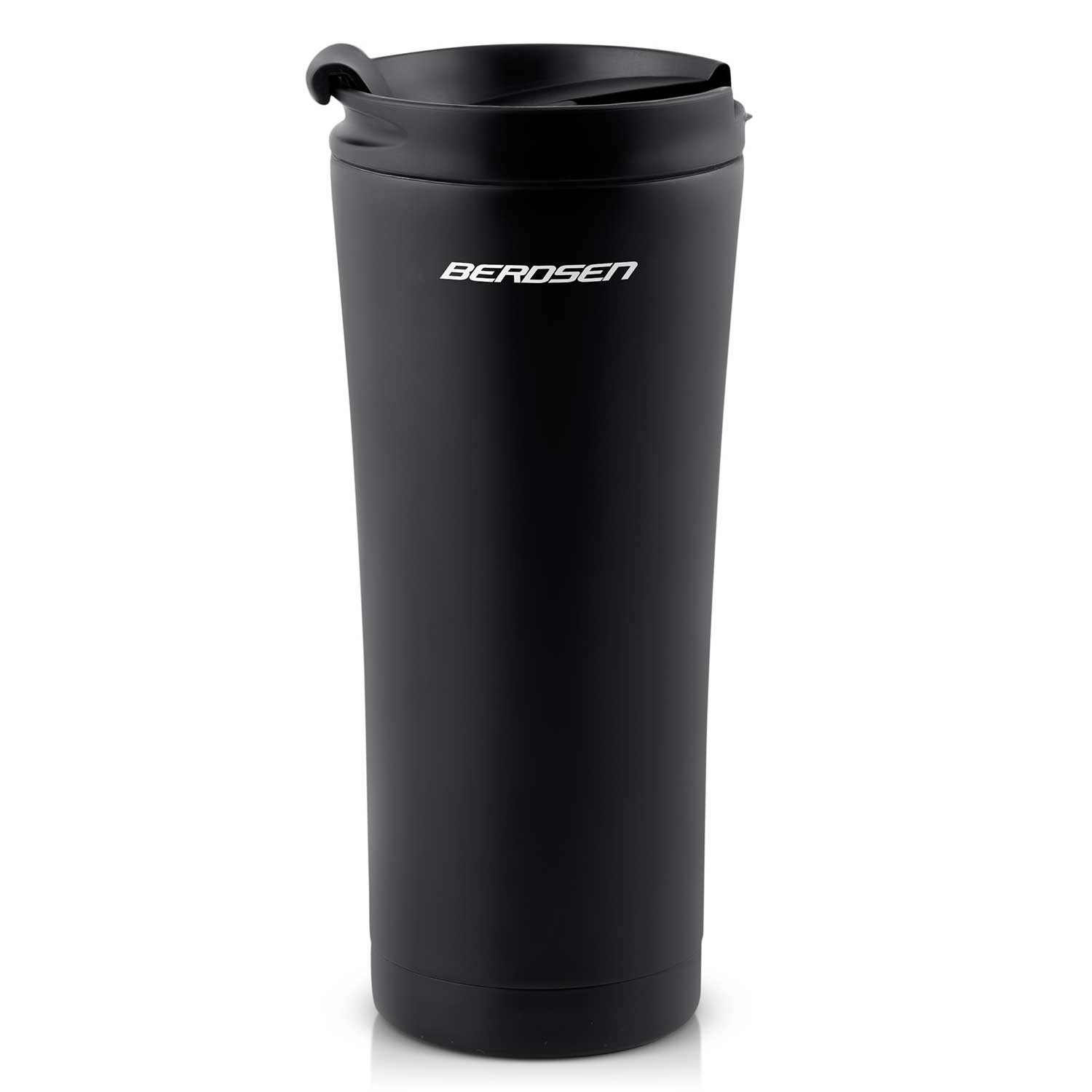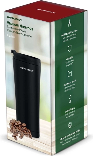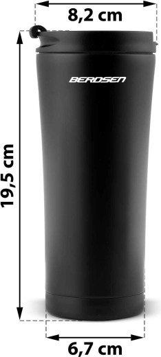 Let og holdbar termokrus BERDSEN 470 ml i rustfrit stål holder drikke varme i op til 12 timer og kolde i op til 24 timer. Den har dobbeltvægget vakuumisolering, tætsluttende låg med anti-spild-lås og ergonomisk form, der passer perfekt i hånden og i kopholderen i bilen. Ideel til rejser, sport og kontoret.