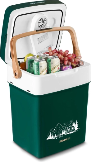Autokøleboksen BERDSEN ICEMAX 29 l kombinerer en let og robust konstruktion med smarte funktioner til alsidig brug. Takket være dobbeltvægge med kvalitetsisolering og en integreret ventilator cirkulerer luften jævnt indvendigt, så drikkevarer og mad køles eller opvarmes effektivt og sikkert. Et praktisk sammenklappeligt håndtag fungerer samtidig som lås af låget med tætningsliste for minimale varmetab.