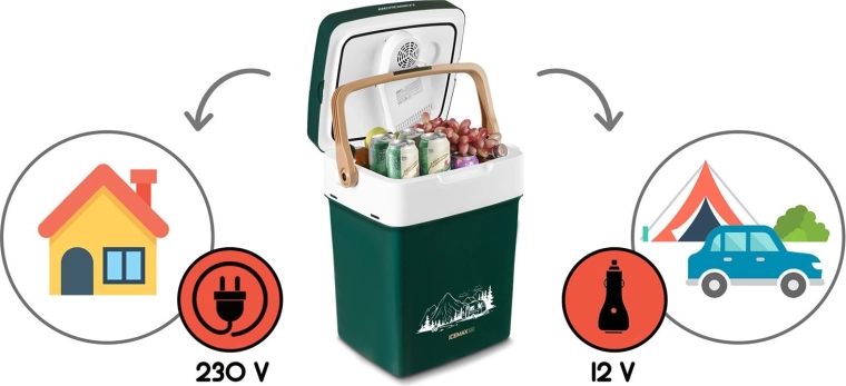 Brug den i bilen via 12 V-stikket eller derhjemme via 230 V. ECO-tilstand reducerer forbruget, når den ønskede temperatur er nået, mens Normal-tilstand giver hurtig nedkøling.