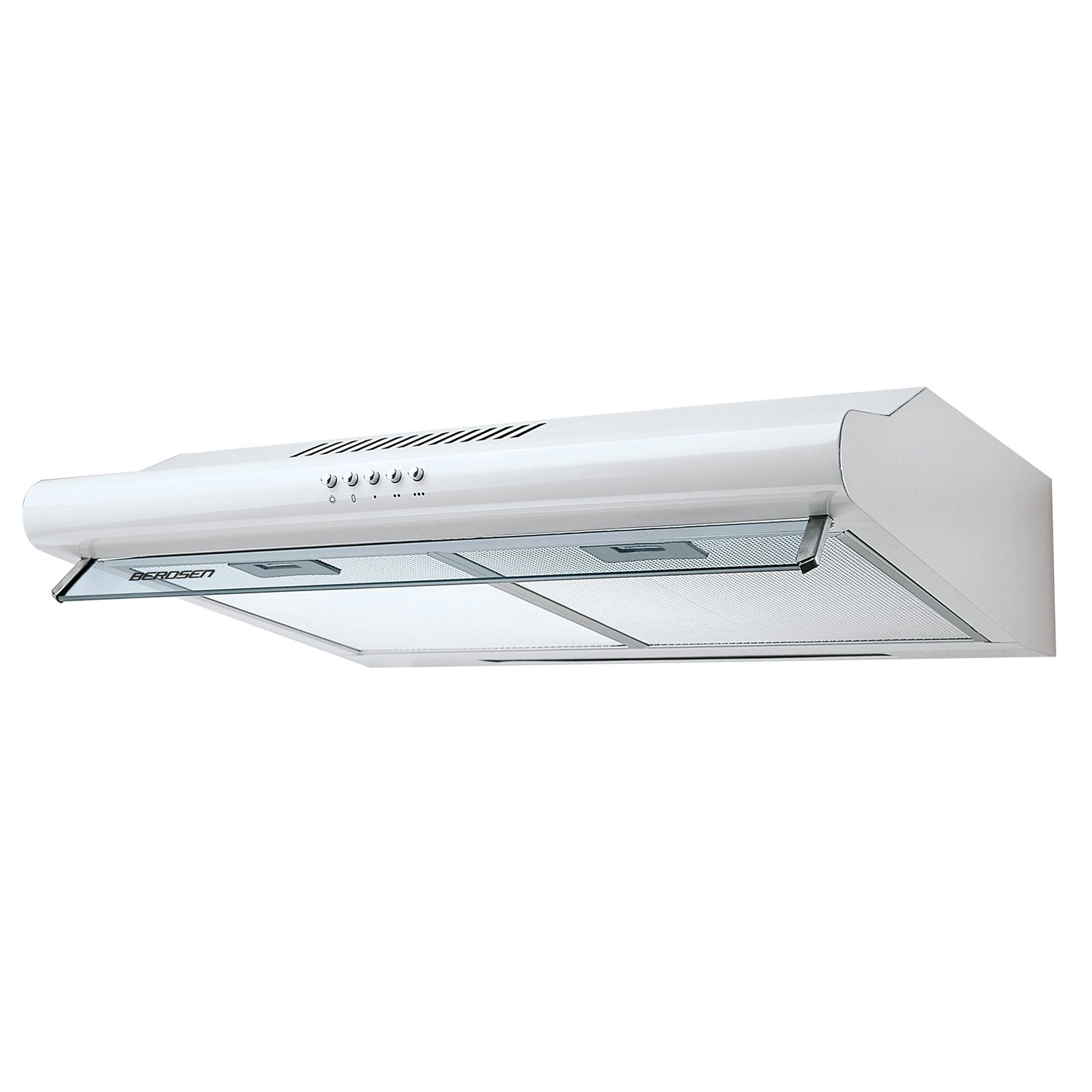 Den kompakte underbygningsemhætte BERDSEN BE-10A i hvid kombinerer høj effektivitet, elegant design og en skarp pris. Den tilbyder 3 hastigheder, mekaniske knapper, LED-belysning og mulighed for drift som udsugning eller recirkulation med kulfilter.