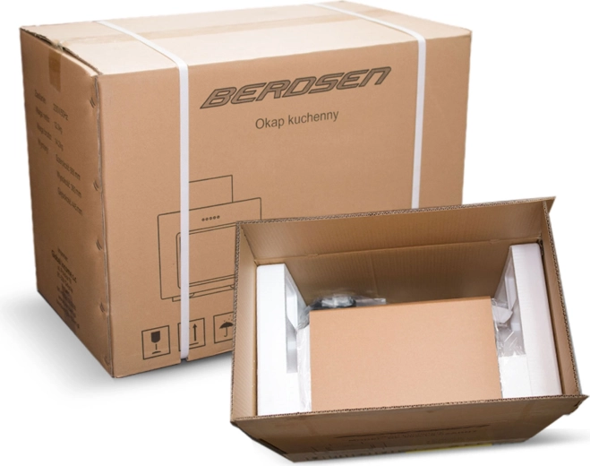 Med en maksimal kapacitet på 205 m³/t fjerner den nemt damp og lugte ved almindelig madlavning. Emhætten kan monteres under skab eller direkte på væggen og arbejder i to tilstande – aftræk til skorsten eller recirkulation gennem det valgfrie kulfilter Berdsen TYP-A (ikke inkluderet). Det 5-lags aluminiumsfilter er vaskbart og sikrer langvarig effektivitet.