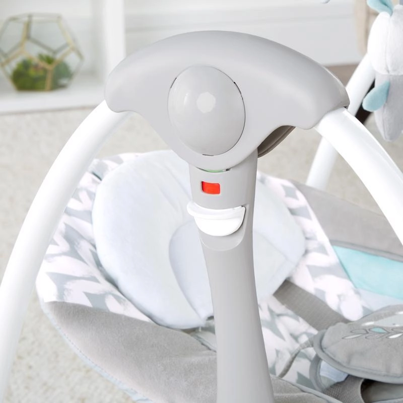 Frigør dine hænder og giv din baby både komfort og underholdning. Den konvertible gyngestol INGENUITY Raylan muliggør indstilling af to positioner, og takket være EasyLock skifter du med ét træk fra gyngning til en stabil vippedel. Den stille drift WhisperQuiet forstyrrer ikke søvnen, og timeren (30/45/60 min) hjælper med at sætte den ideelle rytme for beroligende gyngning.