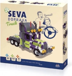 Byggesættet SEVA Transport Truck er ideelt til børn, der vil udvikle deres fantasi og fingerfærdighed. Dette sæt indeholder 402 dele, hvilket gør det muligt at samle forskellige typer maskiner som trækkere, buggier og mindre lastbiler. Børn kan lege lastbilchauffør og rejse, hvorhen de vil.