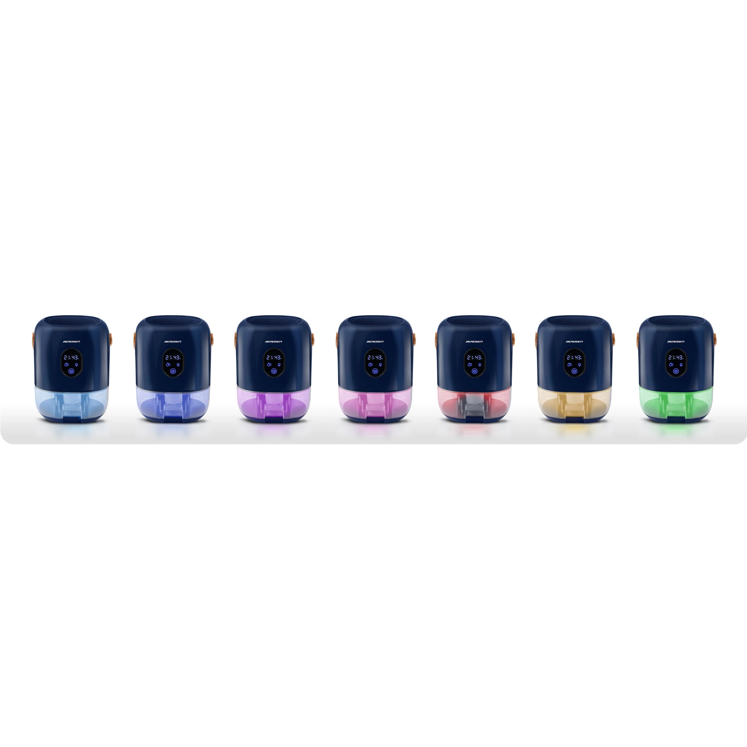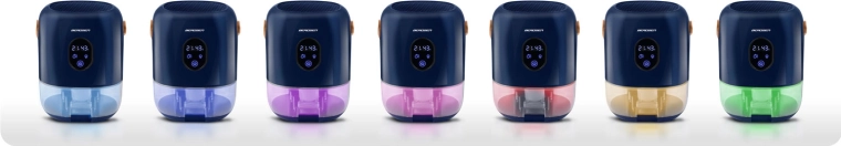 Med touchpanel indstiller du nemt funktionerne, displayet viser aktuel luftfugtighed, og der er også en nattilstand med fuld dæmpning af lyset. Den store aftagelige 1 l beholder tømmes let, og en niveausensor giver dig rettidig besked om behov for tømning.