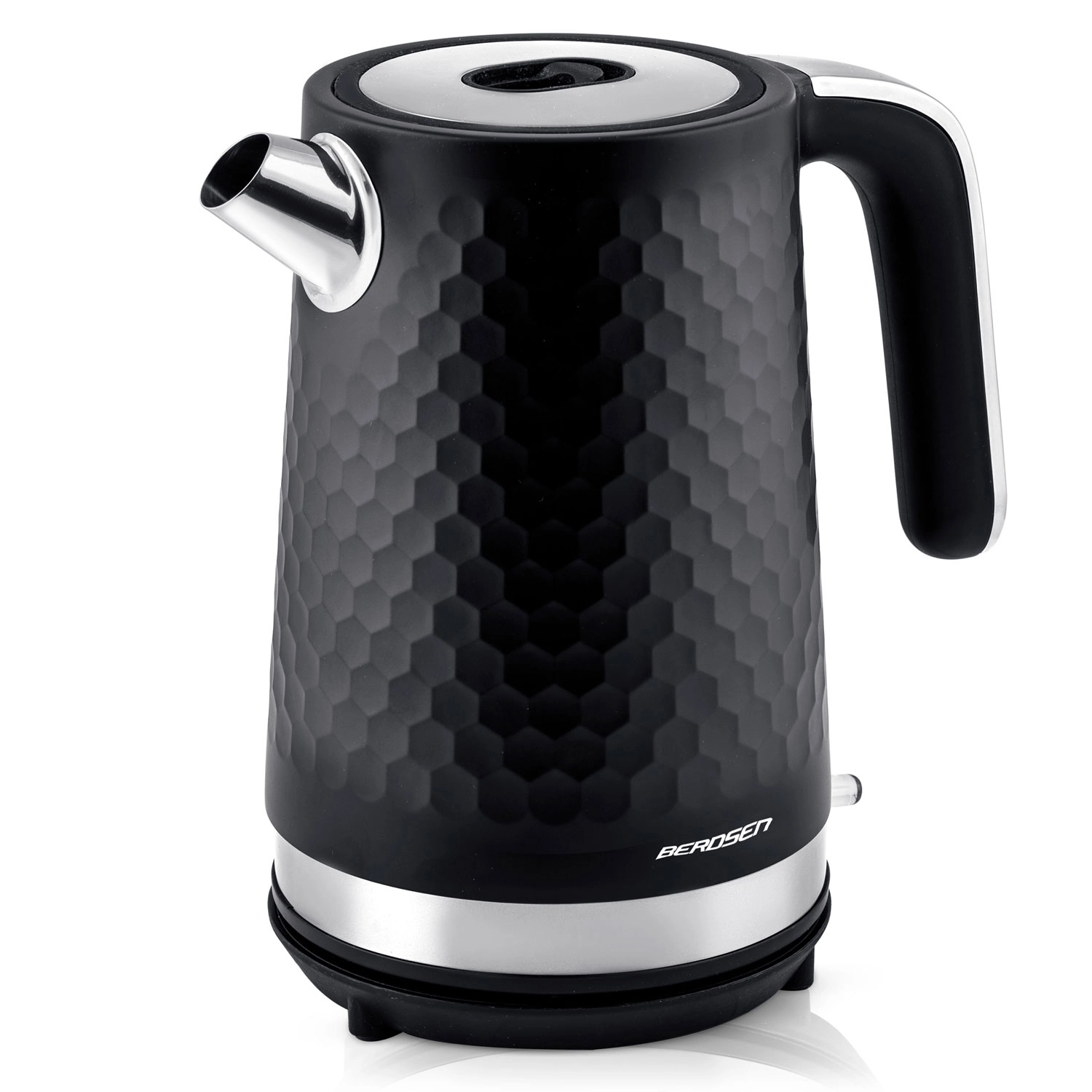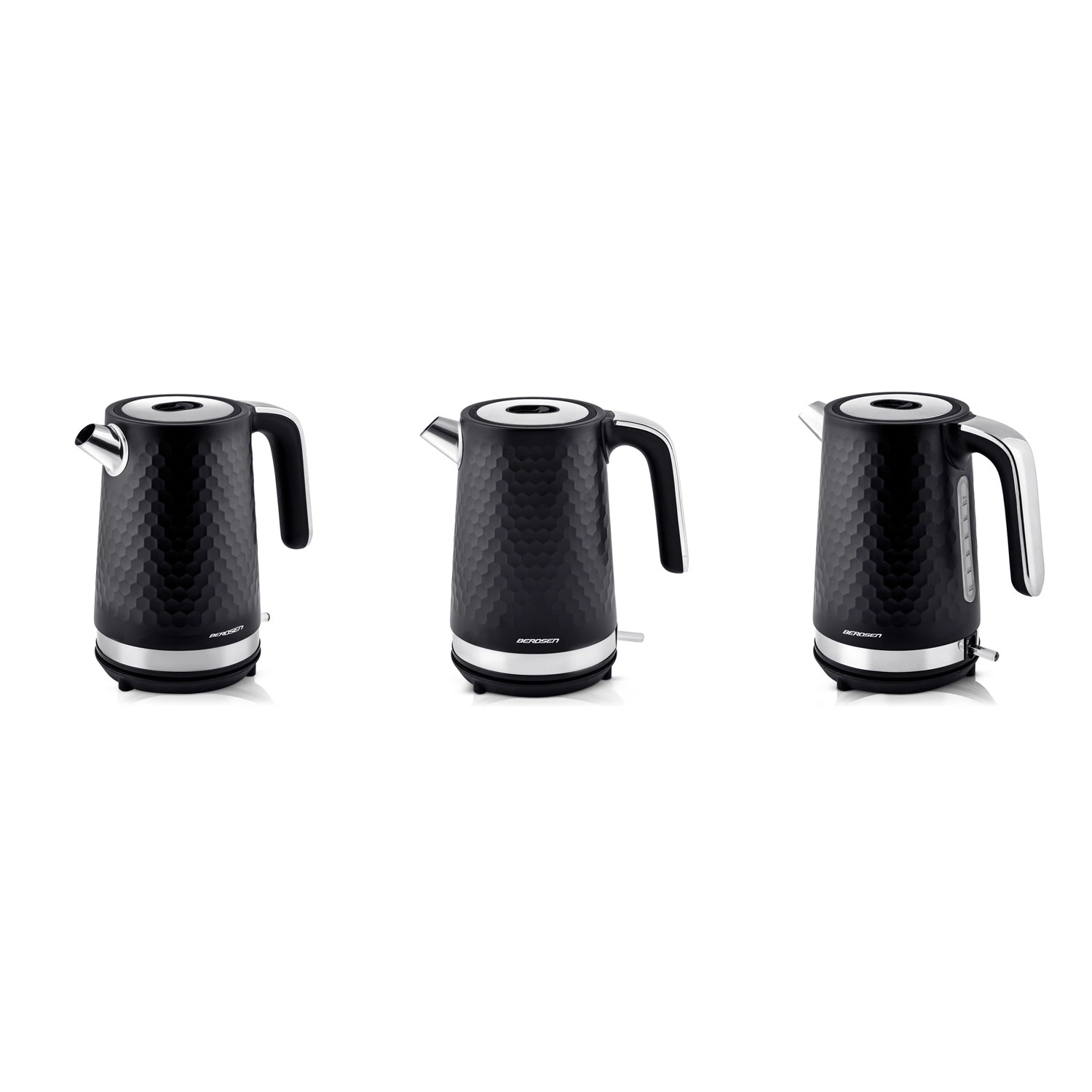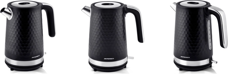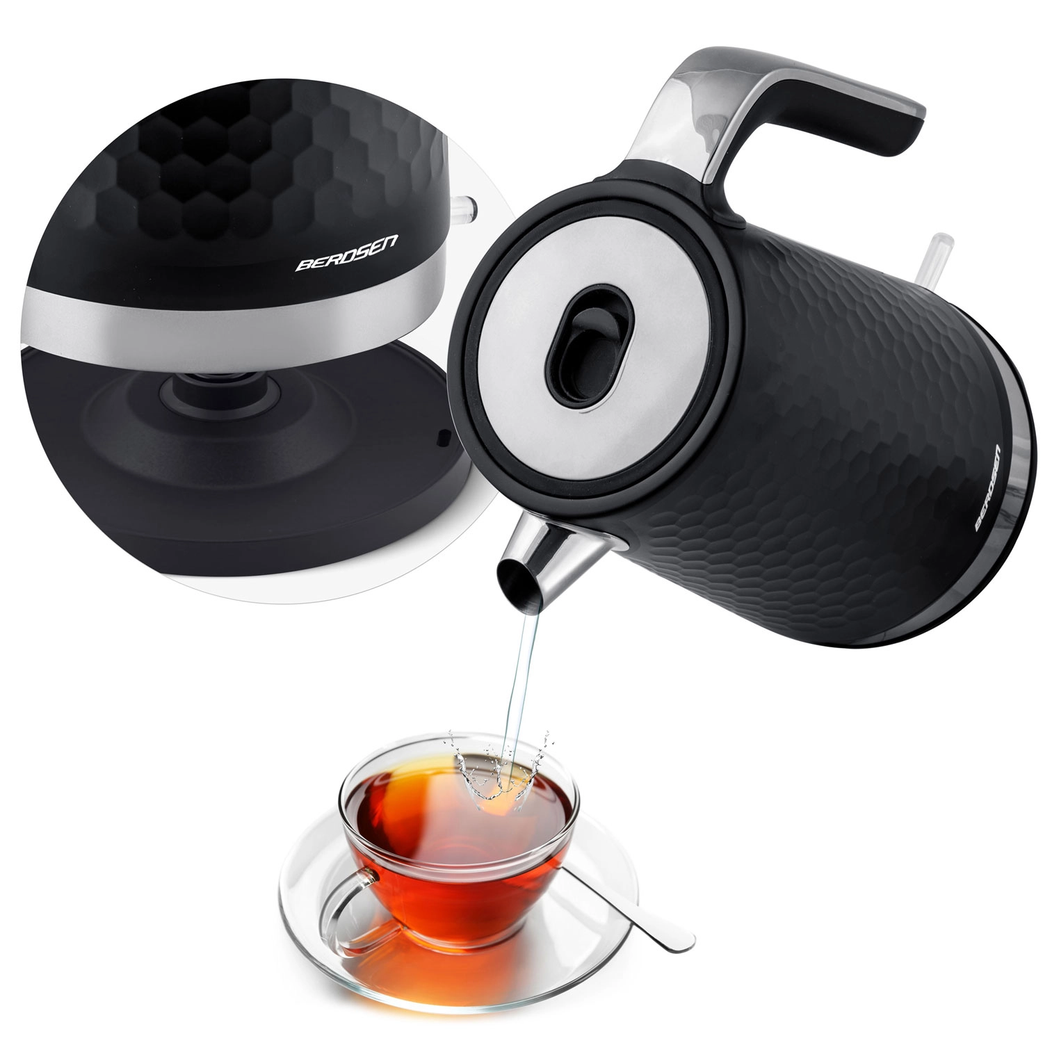 Opdag et elegant køkkentilbehør, der forener design og ydeevne. Den elektriske kedel BERDSEN med metalhus i mat sort og sølvfarvede detaljer passer til moderne interiører i hvide, grå, antracit- og sorte nuancer. Takket være den kraftige effekt på 1850–2200 W opvarmer den vand hurtigt og effektivt, mens vandstandsmåler og belyst kontakt gør hverdagsbrug mere behageligt.