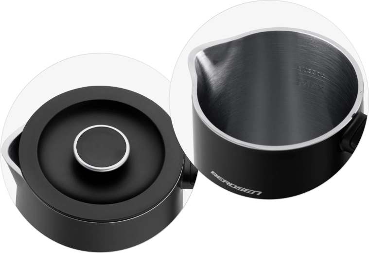 Indersiden i rustfrit stål SUS 304 er holdbar, hygiejnisk og fri for BPA. Med Keep Warm holder du den valgte temperatur i op til 2 timer. Den 360° roterende base, skridsikre fødder, kabelopbevaring og aftageligt låg sikrer nem håndtering og komfort i daglig brug.