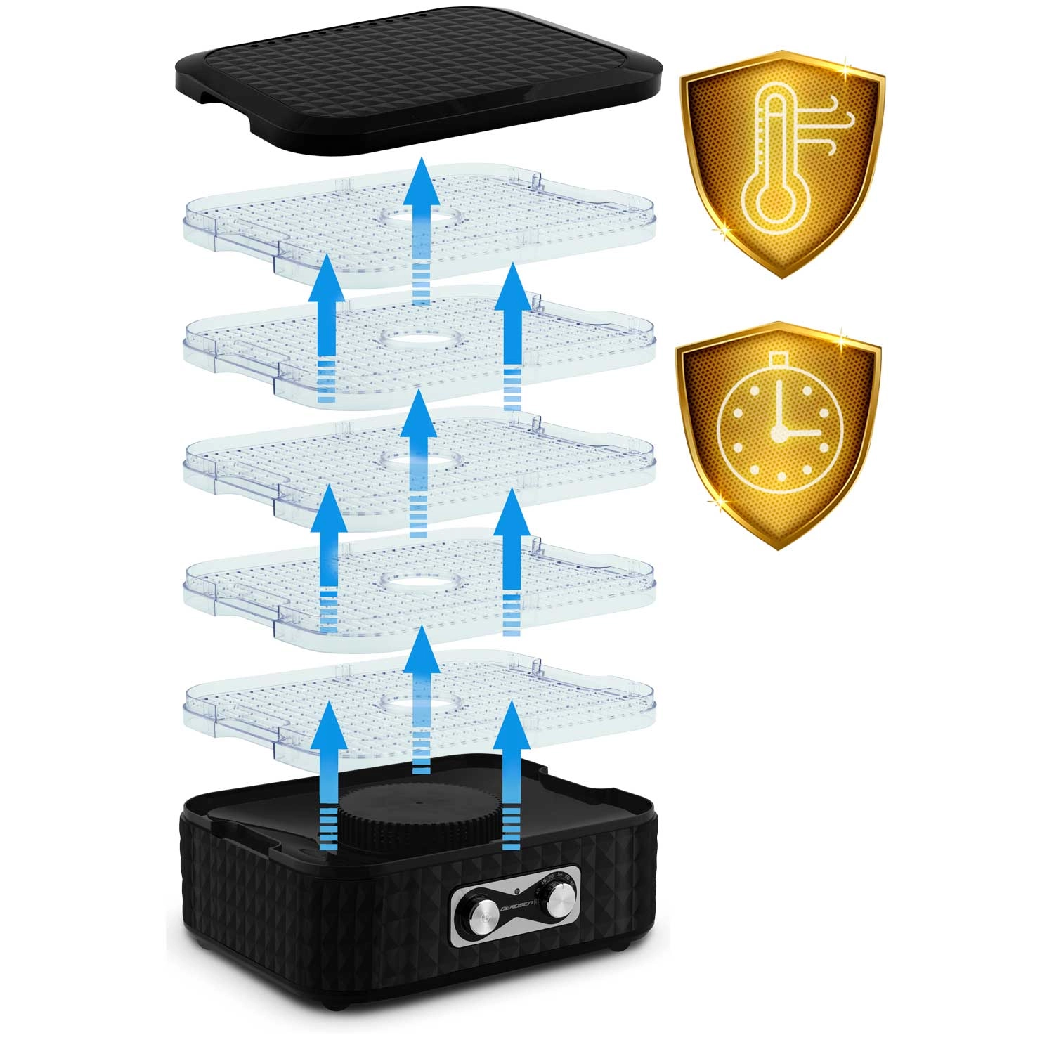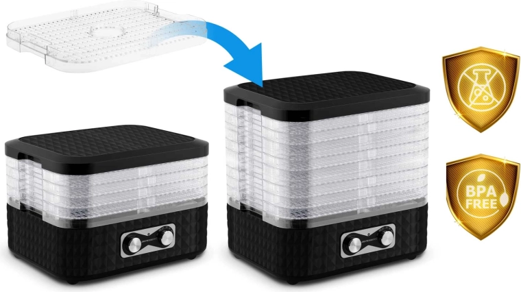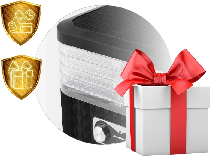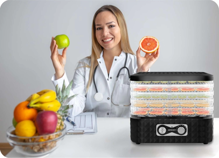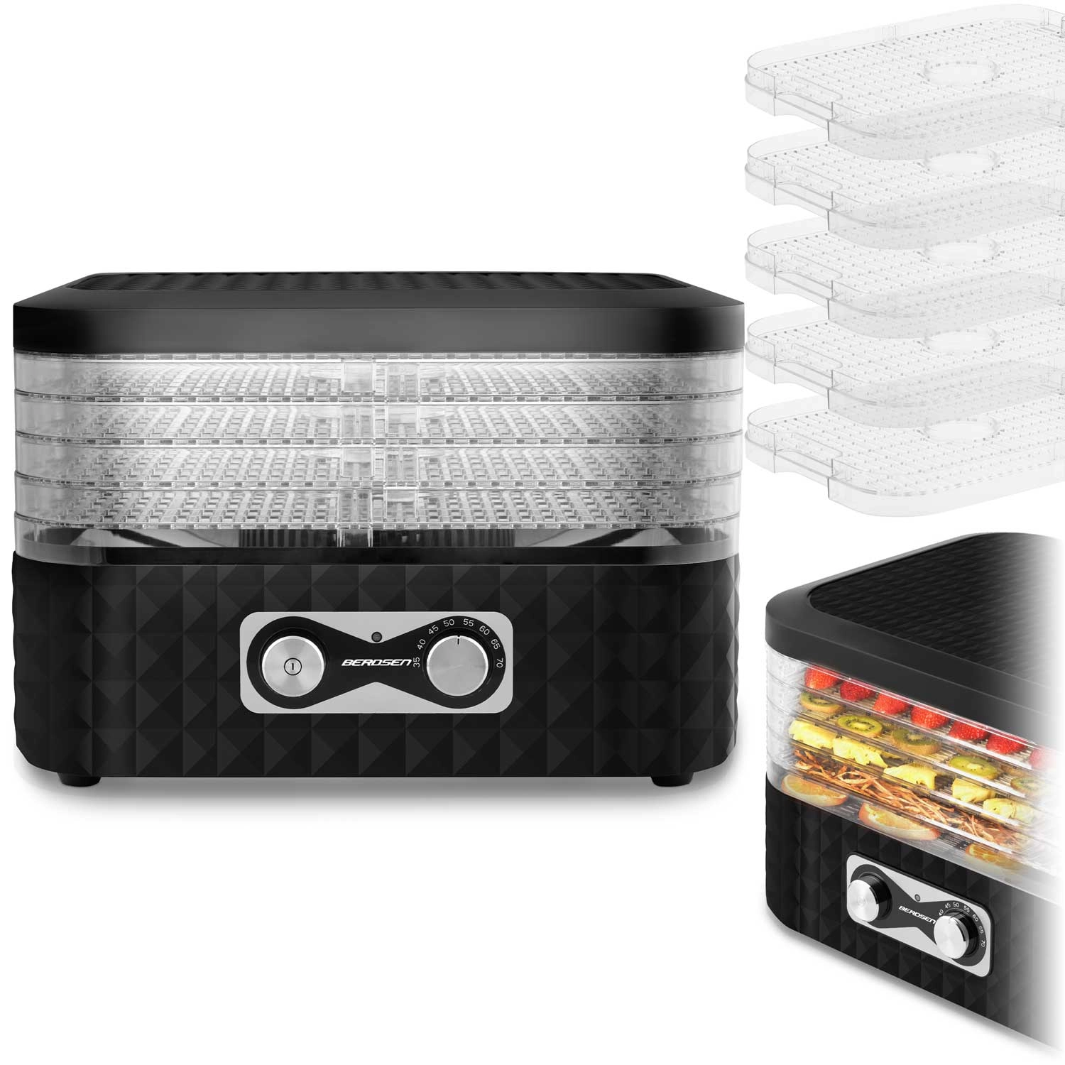 Opdag hjemmetørring med en effekt på 400 W og en kapacitet på 10 liter. Fødevaretørreren BERDSEN tilbyder 5 stabelbare bakker, trinfri temperaturregulering 35–70 °C, jævn luftcirkulation og overophedningsbeskyttelse. Ideel til frugt, grøntsager, urter, svampe og kød – sunde snacks hele året.
