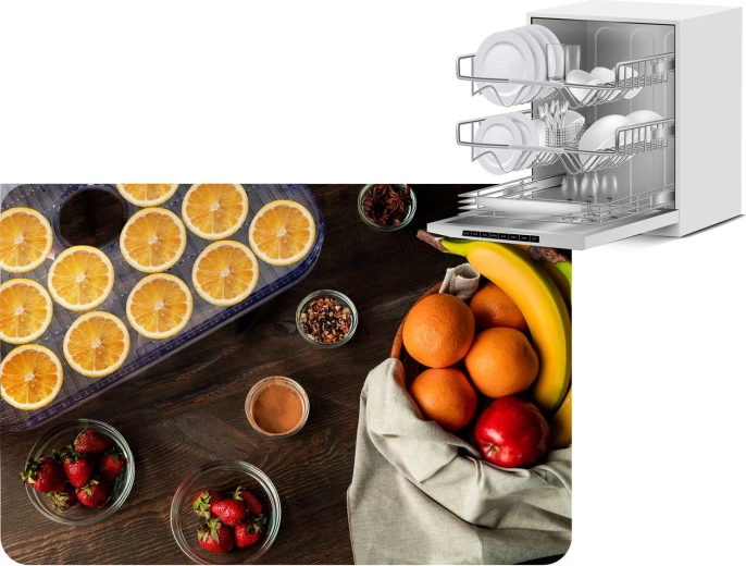 Overophedningsbeskyttelse og CE/RoHS-certificering. Bakkerne kan efter tørring nemt skylles under rindende vand.