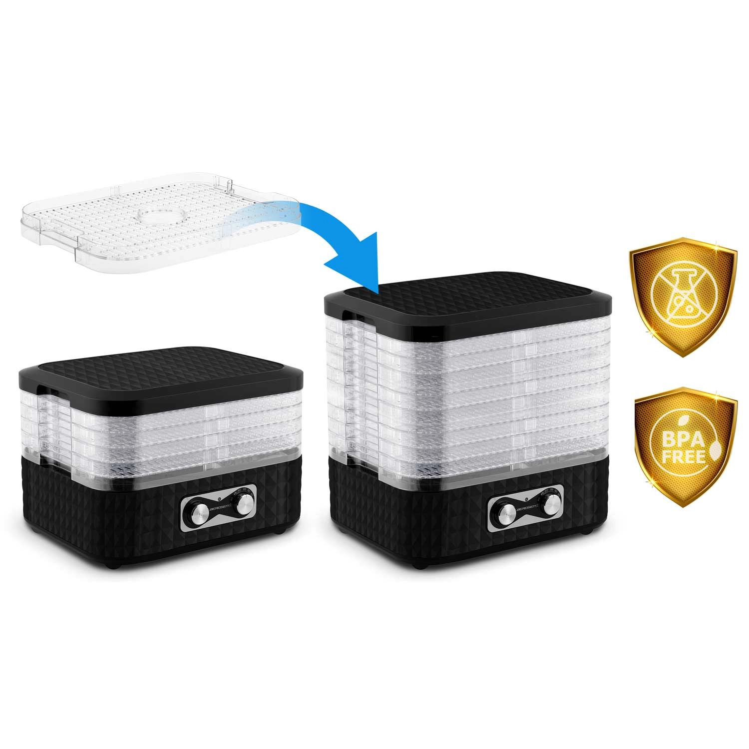 Det fine net forhindrer, at små råvarer falder igennem. Udvid nemt kapaciteten og tør flere portioner på én gang.