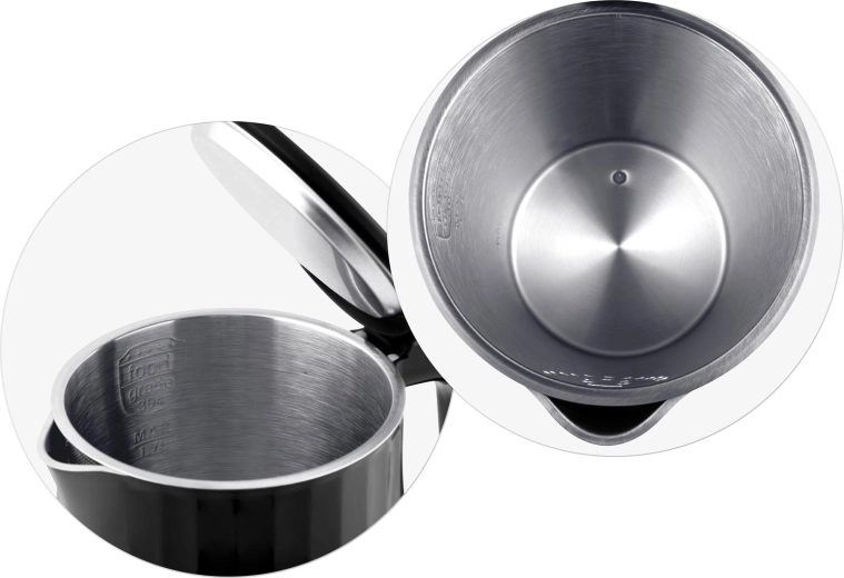 Den praktiske CoolTouch dobbeltvægskonstruktion begrænser opvarmning af kappen, så kedlen er sikker at røre ved og holder bedre på varmen. Indersiden i SUS 304 rustfrit stål er hygiejnisk, holdbar og fri for skadelig BPA. En 360° drejelig base, knapbetjent lågåbning og kabelopbevaring øger komforten i daglig brug.
