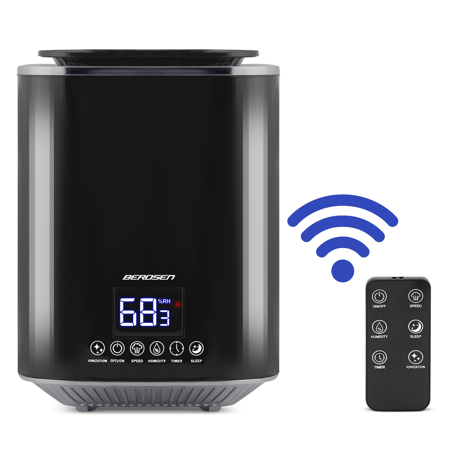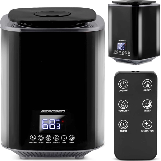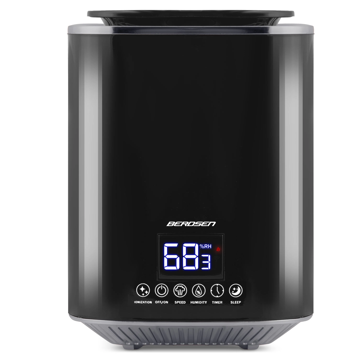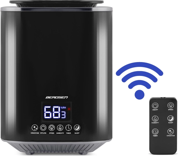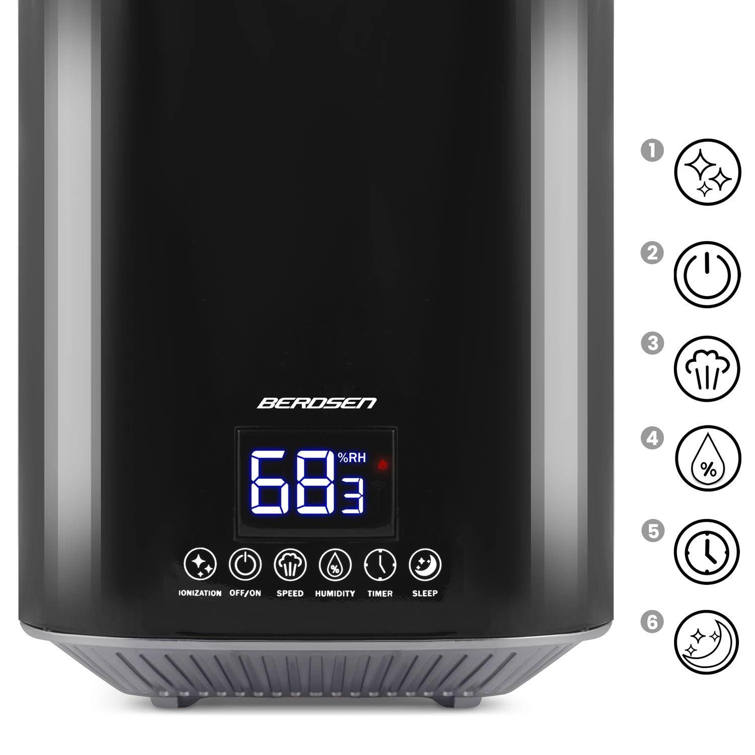 Moderne ultralydsluftfugter BERDSEN med ionisering og aromaterapi sikrer et sundt indeklima derhjemme og på kontoret. Den tilbyder kapacitet op til 250 ml/t, stor vandtank på 2,6 l, præcis fugtstyring via hygrostat 45–90 % og indbygget hygrometer. Bekvem betjening via berøringsfølsomt LED-panel og fjernbetjening, desuden timer, nattilstand og automatisk slukning når tanken er tom.