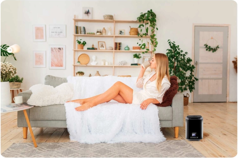 Ionisering hjælper med at neutralisere støv og allergener, mens aromaterapi gør det muligt at tilsætte et par dråber olie for en afslappende atmosfære.