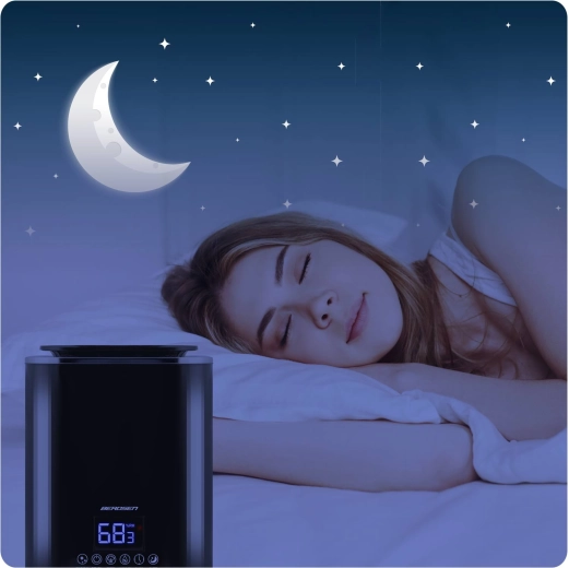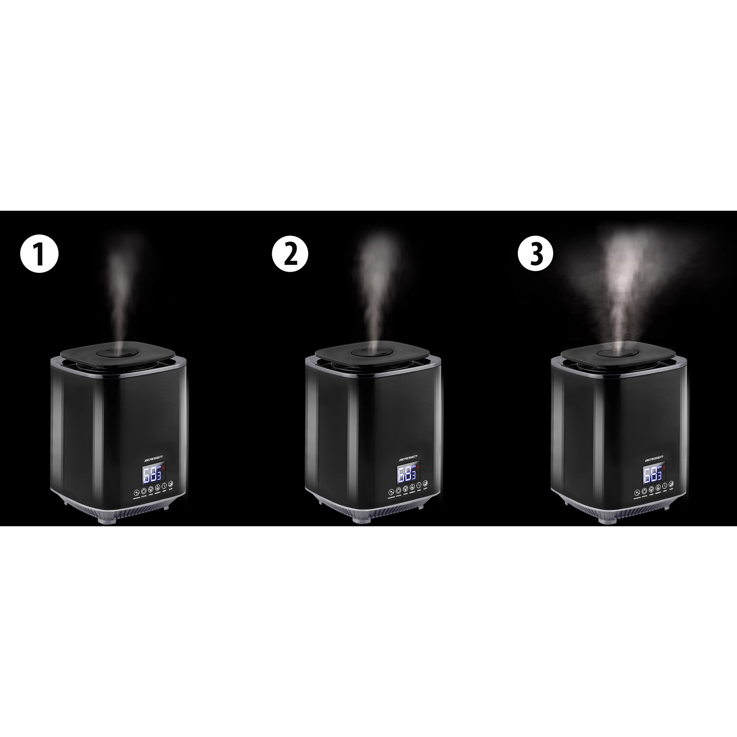 Indbygget hygrostat og hygrometer overvåger præcist luftfugtigheden. Når målet er nået, går luftfugteren i standby, og ved fald i fugtigheden genoptager den automatisk driften.