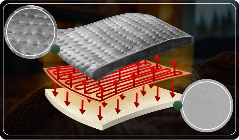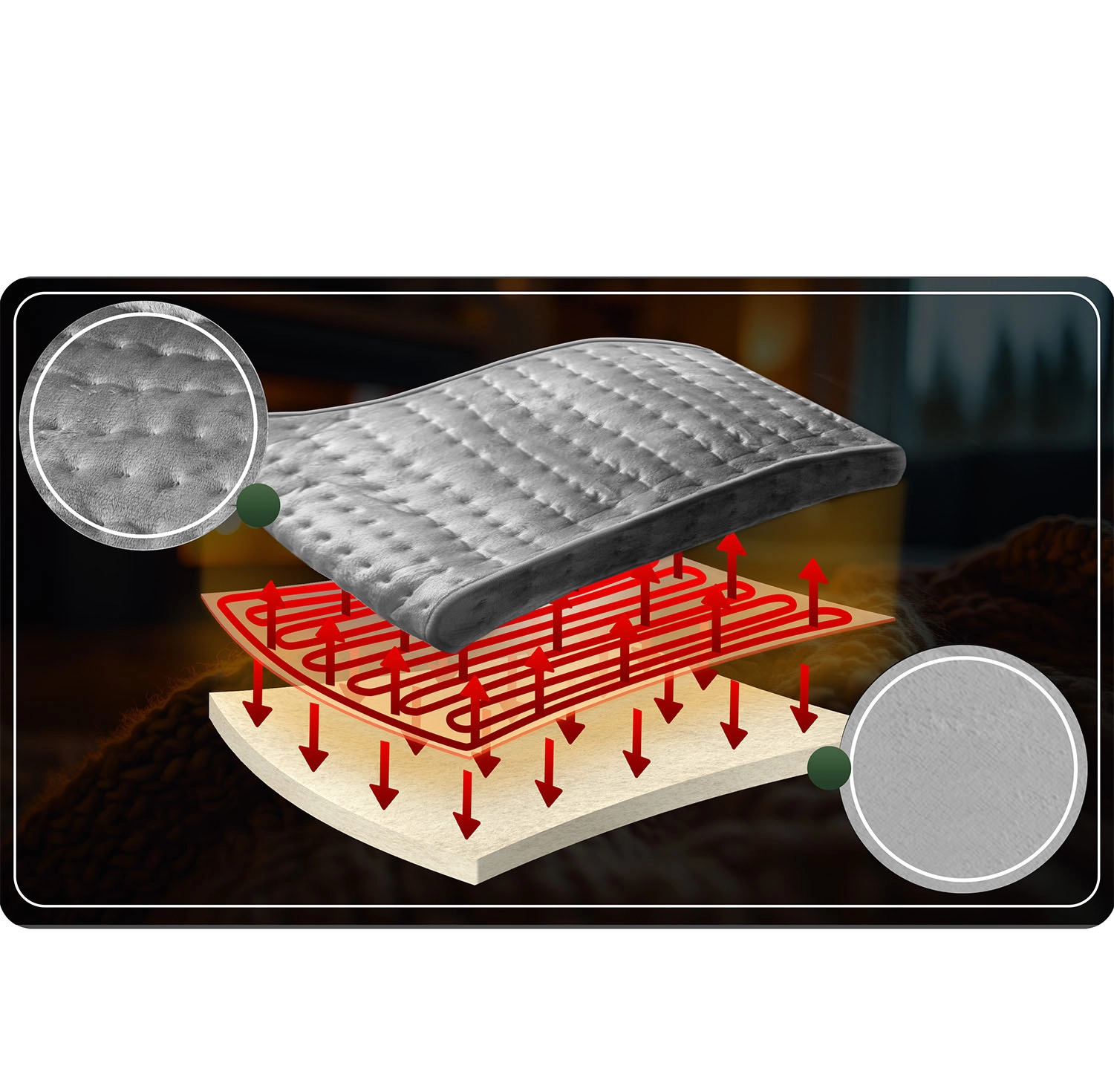 Bagbelyst LCD-controller for overskuelige indstillinger og tryghed takket være overophedningsbeskyttelse og automatisk slukning efter 90 minutter.
