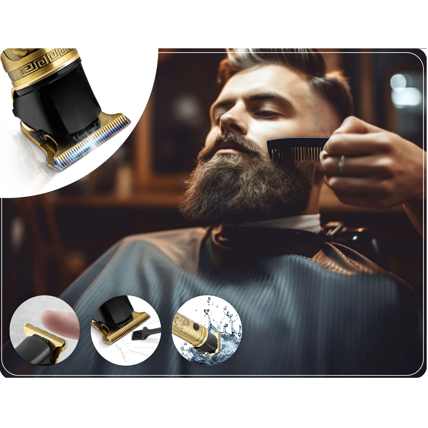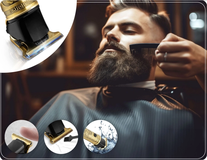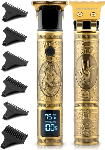 BERDSEN Barber Master er en pålidelig trimmer til både hår og skæg, som kombinerer en kraftig motor, et præcist T‑stålblad og en smart LCD-skærm. Vælg let den ideelle hastighed efter hårtype og hudens følsomhed, og takket være metalkabinettet med ergonomisk greb får du stabil føring – selv ved detaljeret formning af linjer og konturer.