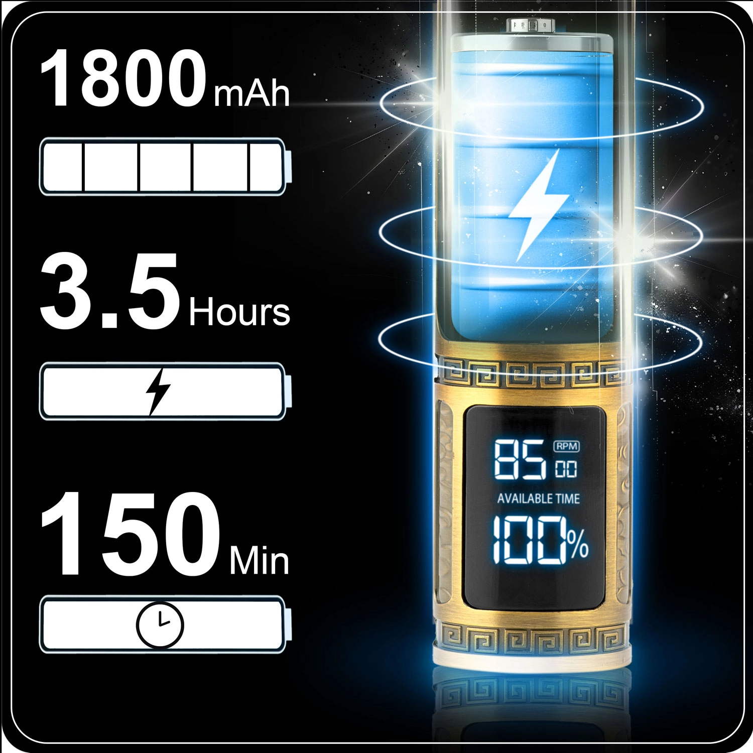 Til behagelig hjemmefrisering og barber‑styling får du 6 føringskamme (1,5–9 mm), som muliggør bløde overgange, fade og skægtrimning i rene former. Li‑Ion-batteriet på 1800 mAh sikrer op til 2,5 timers arbejde, mens USB‑C-opladning fylder op på cirka 3,5 timer. Den praktiske LED/LCD-indikator viser resterende tid og batteristatus, så du altid har fuldt overblik.