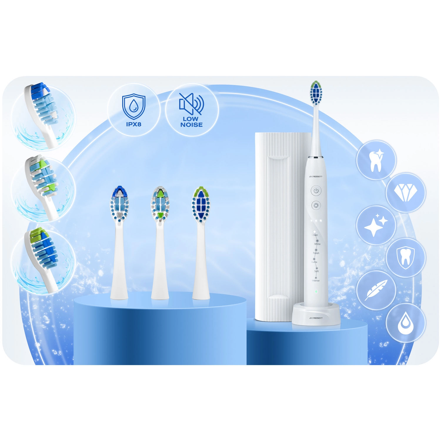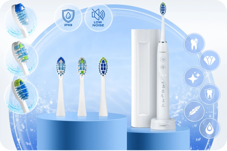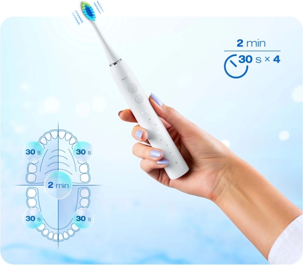Oplev en daglig revolution i mundhygiejnen med den soniske tandbørste Berdsen Galaxy – op til 40.000 bevægelser pr. minut, 6 tilstande og 3 intensitetsniveauer for perfekt rene tænder. Pakken indeholder 3 ekstra børstehoveder, et kraftigt batteri på op til 50 dages drift, IPX8 vandtæthed, en smart 2-minutters timer med 30 s intervaller og et rejseetui til praktisk brug hjemme og på farten.