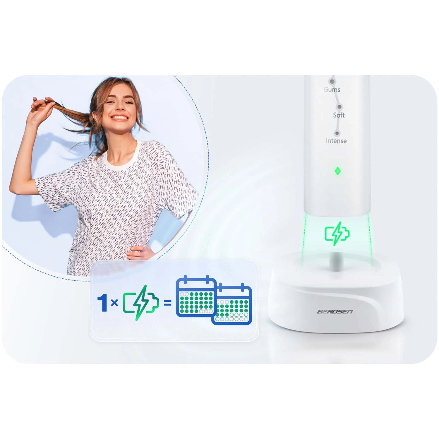 Berdsen Galaxy bruger avanceret sonisk teknologi, der er skånsom, men særdeles effektiv til at nedbryde plak og nå selv svært tilgængelige områder. Det innovative hoved med bløde børstehår følger tændernes form, og bagsiden kan bruges til tungeskrub for frisk ånde. Resultatet er et hvidere smil på få uger og op til 6× mere effektiv fjernelse af belægninger end med almindelige manuelle tandbørster.