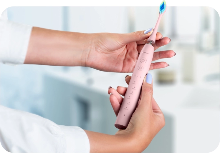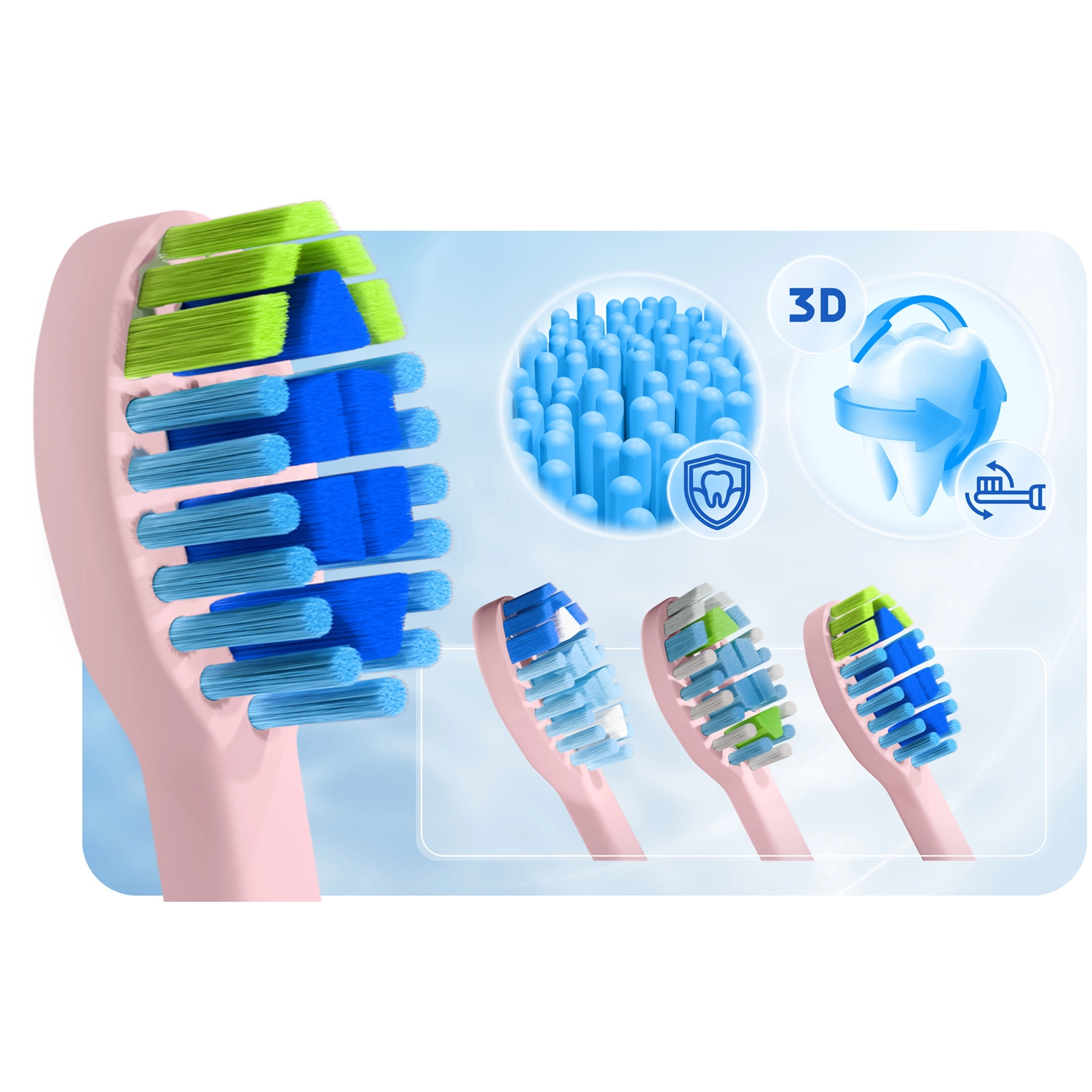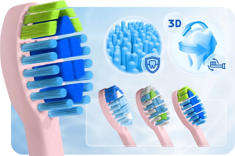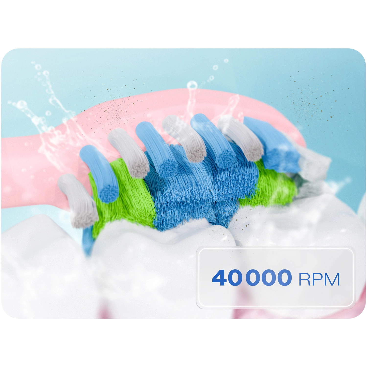 Effektiv sonisk rengøring med op til 40.000 vibrationer pr. minut fjerner hurtigt plak og misfarvninger, mens de bløde børstehår skånsomt plejer emalje og tandkød. Hovedet med innovativ børstehårsopsætning tilpasser sig tandens form, og den bagerste del fungerer som en tungerenser for langvarig frisk ånde.