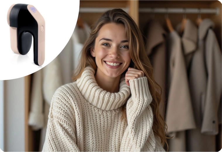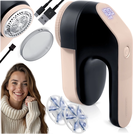 Den ergonomiske form sikrer et behageligt greb, den store opsamlingsbeholder gør rengøringen nem, og den beskyttende hætte med profileret gitter beskytter tekstiler mod at blive trukket. Med et genopladeligt 2000 mAh batteri klarer enheden cirka op til 3 timers drift og oplades med et moderne USB‑C-kabel – ideel til både hjemmepleje af garderoben og på farten.