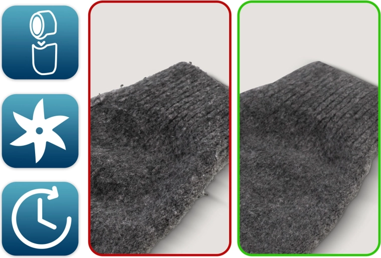 Skarpe rustfri stålblade klarer fnug, kugler og udstående fibre og efterlader stoffet glat og velplejet.