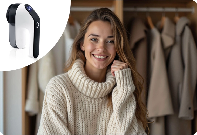 Takket være 3 tilstande tilpasser du intensiteten til det konkrete stof: fra sarte bluser og T-shirts til kraftige sweatre og betræk. Den store opsamlingsbeholder gør vedligeholdelsen enkel, og den ergonomiske form sikrer behagelig brug selv ved længere fnugfjernelse.