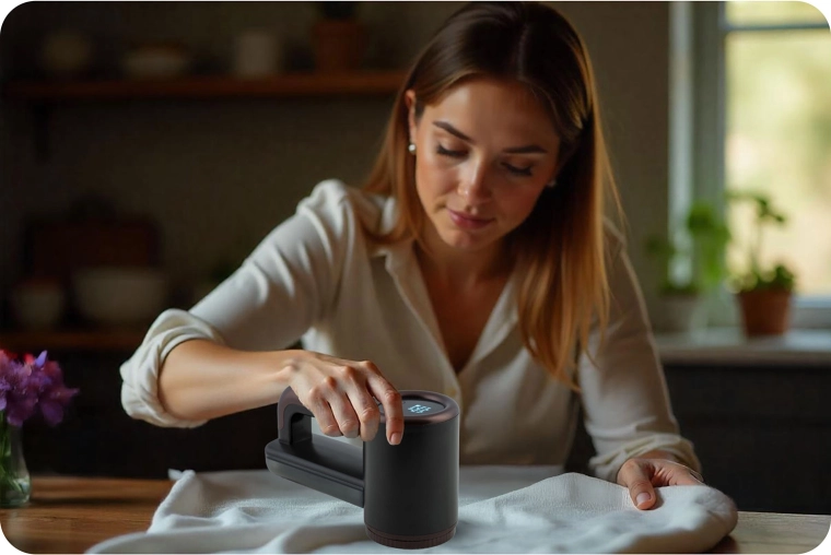 Lang driftstid til grundig pleje af garderobe og hjemmetekstiler. Opladning via USB‑C er bekvem og hurtig.