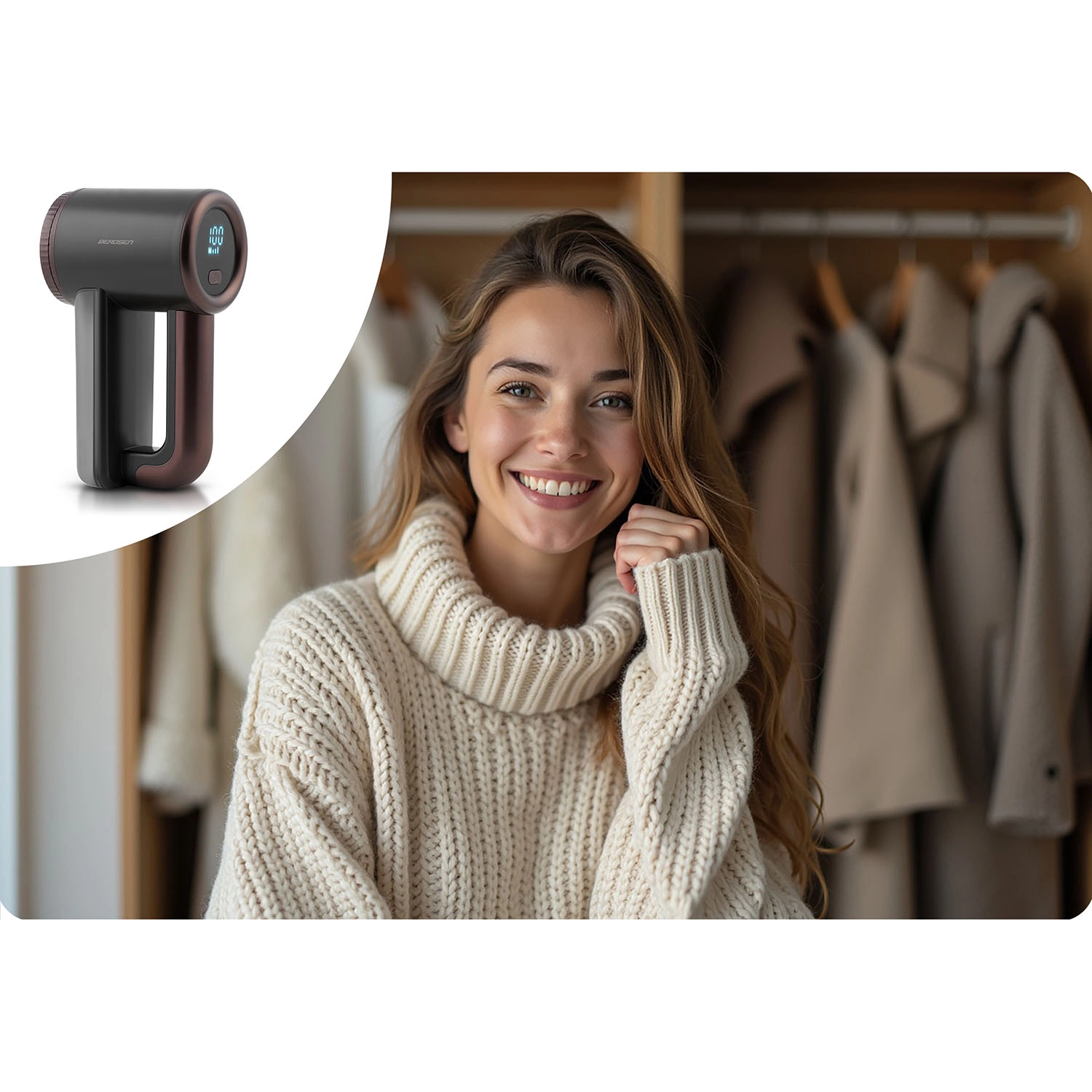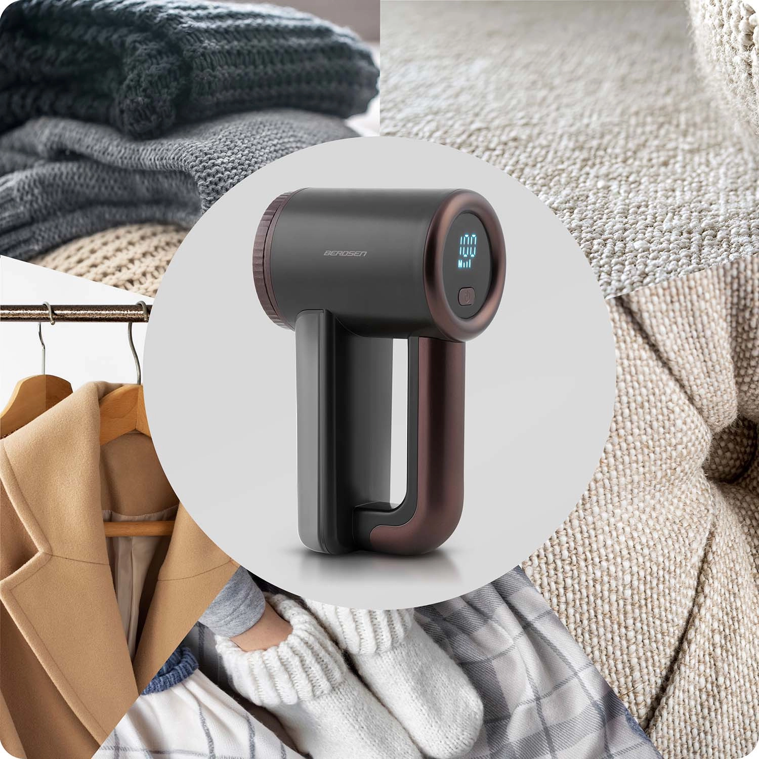 Genskab udseendet på dine yndlingsdele – BERDSEN fnugfjerner fjerner skånsomt og effektivt fnug fra strik, frakker, skjorter samt fra tæpper, gulvtæpper og polstring. Den ergonomiske form og det overskuelige LCD-display sikrer komfortabel brug hjemme og på farten.