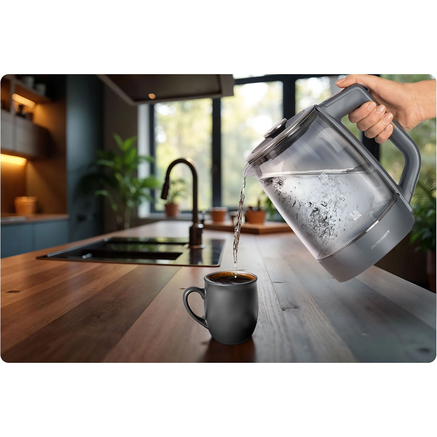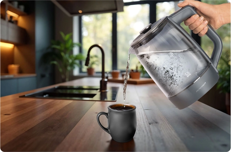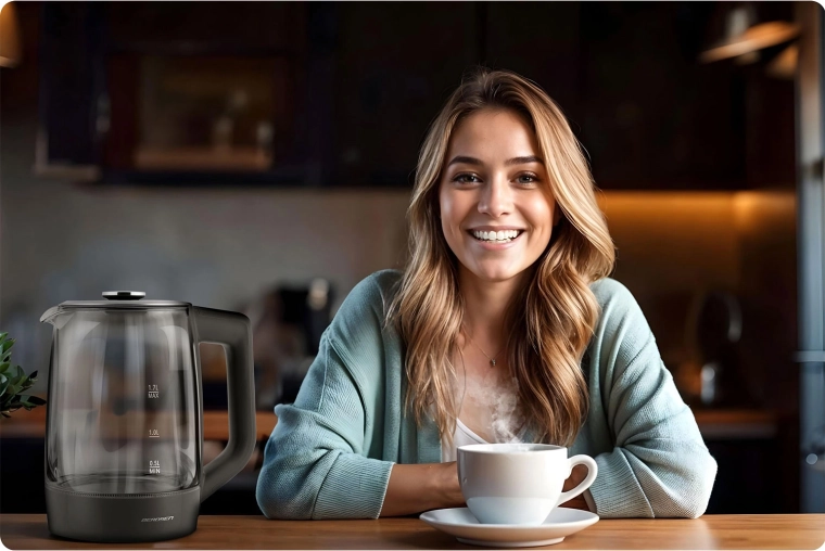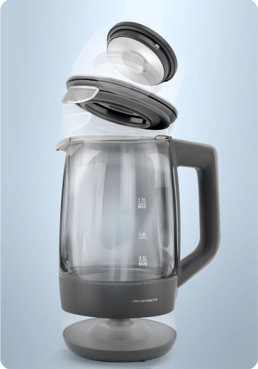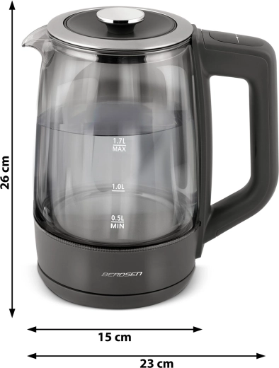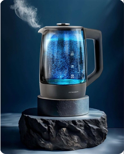 Glaskedlen BERDSEN BD-711 kombinerer moderne design med maksimal funktionalitet. Præcis temperaturindstilling lader dig tilberede enhver drik ved den ideelle temperatur – fra modermælkserstatning til grøn te og kaffe. Borosilikatglas er hygiejnisk, robust og let at rengøre, mens blå LED elegant fremhæver opvarmningsprocessen.