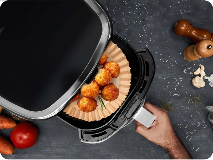 Gør madlavningen i din airfryer nemmere med engangsindsatser af bagepapir fra Berdsen. De minimerer fastbrænding og fedt, så du efter tilberedning blot kan smide indsatsen ud, og kurven forbliver markant renere. Ideelle til daglig brug og sundere bagning uden unødvendig olie.