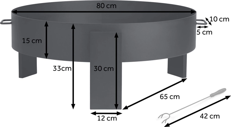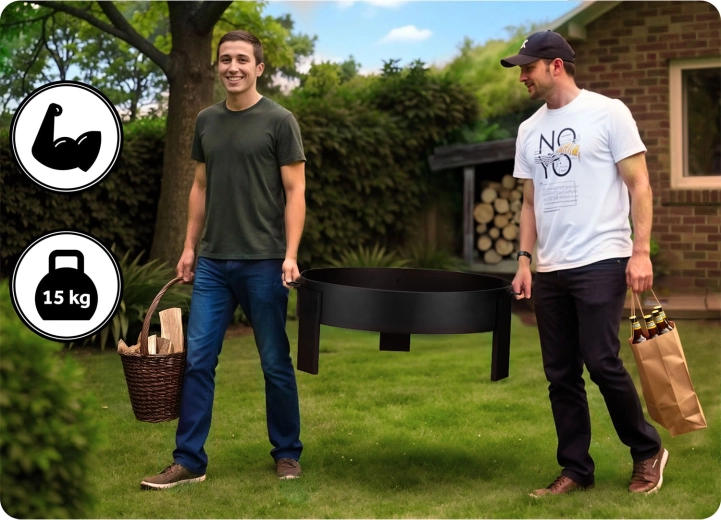 Den solide stålkonstruktion af 2 mm plade står sikkert på tre ben og giver stabilitet og sikkerhed. Sidehåndtag gør det lettere at flytte, og i pakken får du desuden en poker med håndtag til nem håndtering af brændet. Det minimalistiske, alsidige design passer både i moderne og traditionelle haver og falder naturligt ind i enhver udendørs stil.