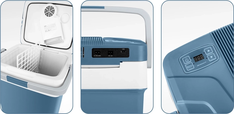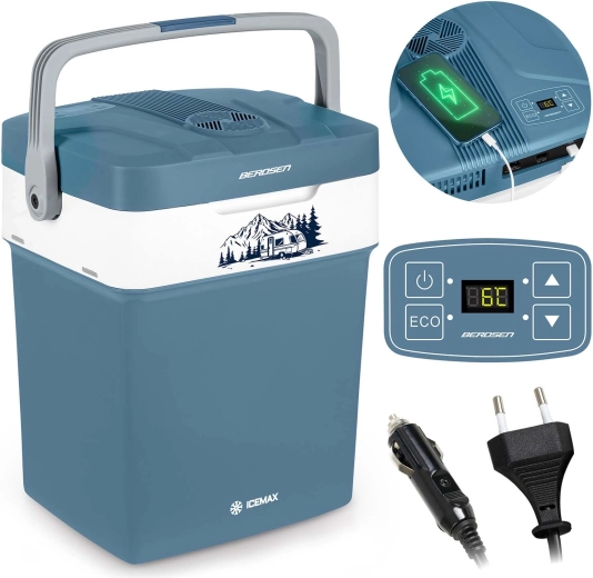 Nyd kolde drikke og friske fødevarer derhjemme og på farten med den bærbare bilkøleboks BERDSEN Icemax med en kapacitet på 29 l. Den tilbyder ECO-tilstand, elektronisk panel med mulighed for temperaturindstilling, dobbelt strømforsyning 12 V/230 V og effektiv køling ned til 18 °C under omgivelsestemperaturen. Takket være støjsvag drift, en praktisk skillevæg og en sikkerhedslås i låget er den ideel til camping, picnic, strandture og lange udflugter.